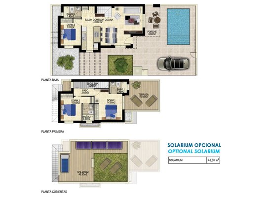 Diese hübschen Villen verfügen über eine konstruierte Fläche von ca. 139 m² (inklusive Terrassen) mit