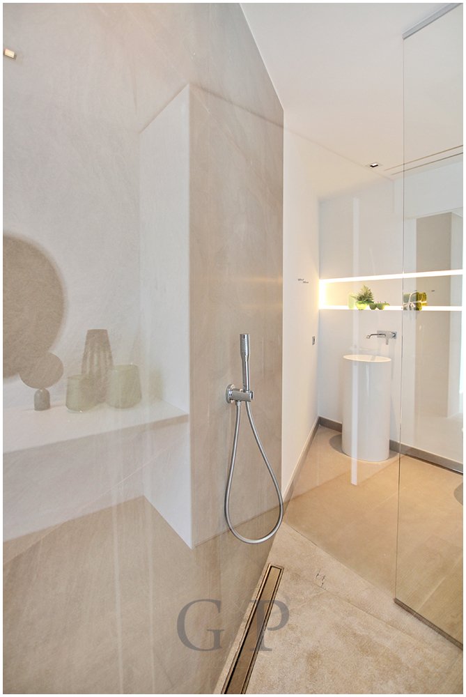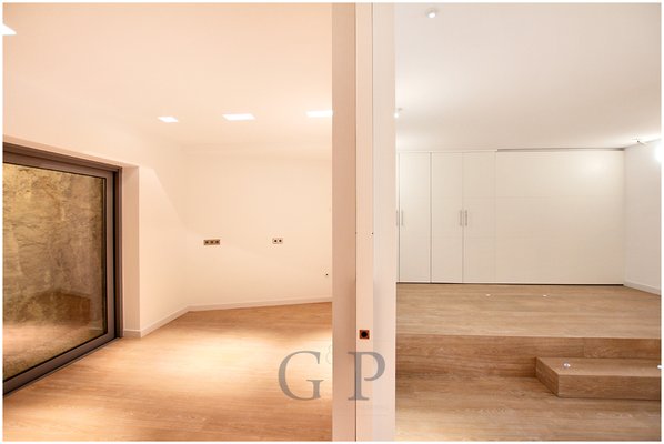 Im Untergeschoss befindet sich zur Linken der Spa - Bereich - mit dazugehörigem Bad, separat aufgeteilt in Dusche und Toilette und der Fitnessbereich. Zur Rechten steht Ihnen ein weiteres Schlafzimmer mit Bad en-suite und Ankleidebereich zur Verfügung sowie das Home Cinema.