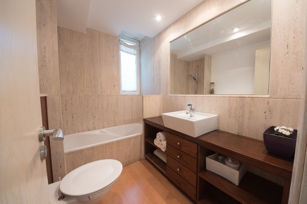 Darüber hinaus verfügt die Wohnung über Parkettboden, Travertinfliesen, umschaltbare Klimaanlage und Gemeinschaftsparkplätze.