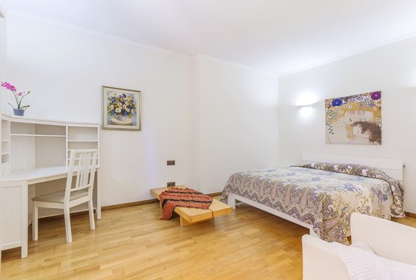 Sie betreten das Obergeschoss, in dem sich ein großes Wohnzimmer mit einem schönen Essbereich befindet und der Kamin ein gemütliches Ambiente schafft. Von hier aus haben Sie einen atemberaubenden Blick und Zugang zum sehr weitläufigen Garten. Das Hauptschlafzimmer verfügt über einen privaten Salon, einen Kleiderschrank, ein eigenes Bad und eine eigene Terrasse mit entspannender Aussicht. Auf der anderen Seite des Wohnzimmers befinden sich die Küche, die Waschküche und ein weiteres Schlafzimmer mit Bad, ideal als Gästezimmer oder Personalunterkunft. Die Waschküche bietet Zugang zur Außenterrasse mit einem schönen Grillplatz.
