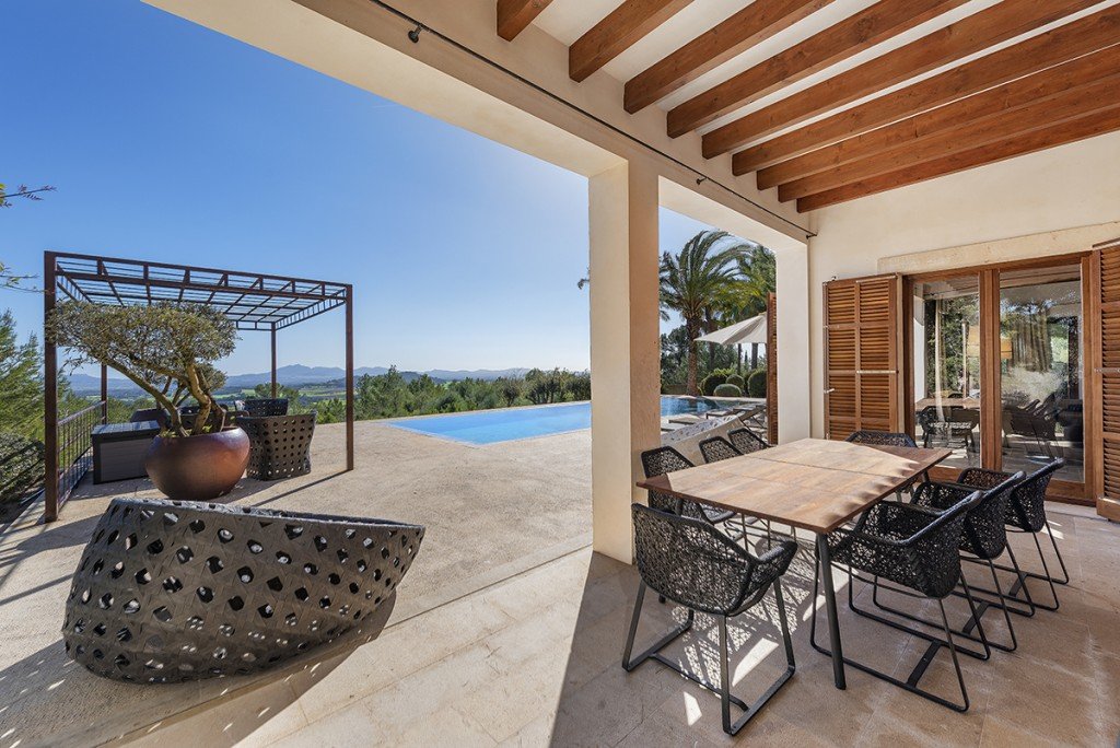 Die erste Etage beherbergt drei Schlafzimmer und drei Bäder en suite, darunter ein beeindruckendes Hauptschlafzimmer mit Ankleideraum und privater Terrasse mit Bergblick.
