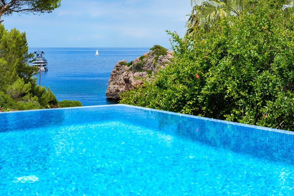 Die Villa verfügt über zwei Pools , einen drinnen und einen draußen mit spektakulärem Blick auf Cala Deia, eine der einzigartigsten und exklusivsten Ecken Mallorcas.