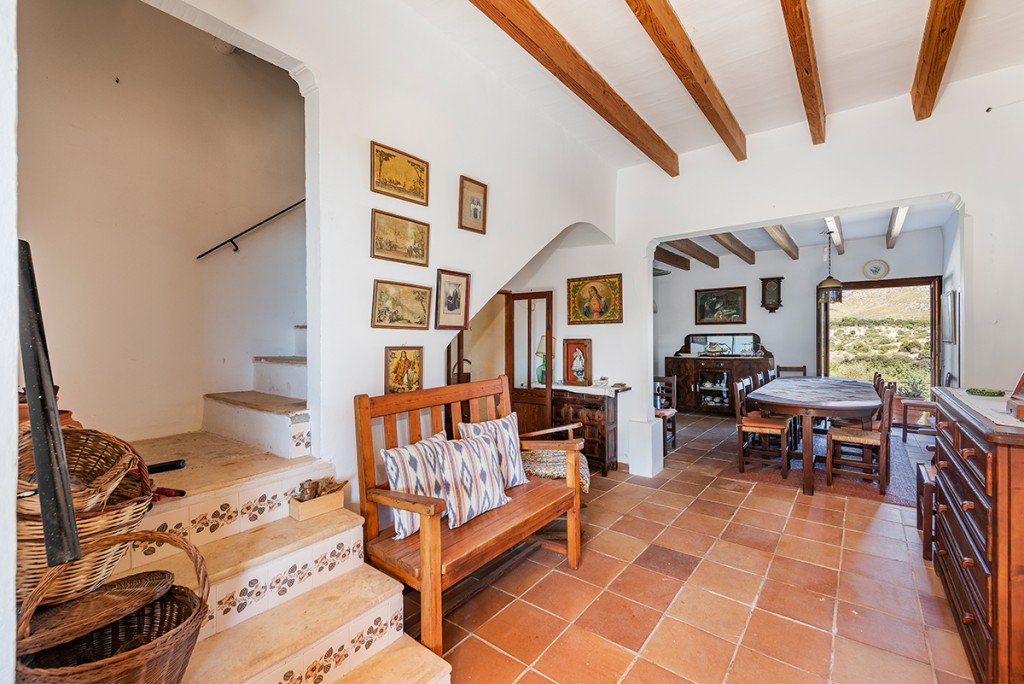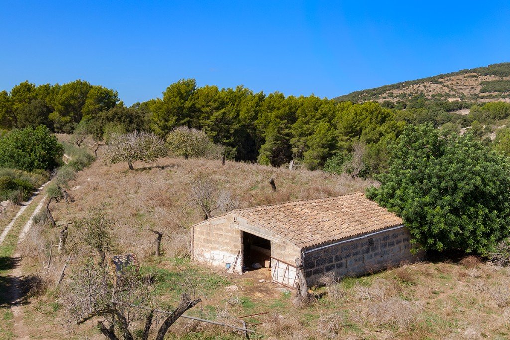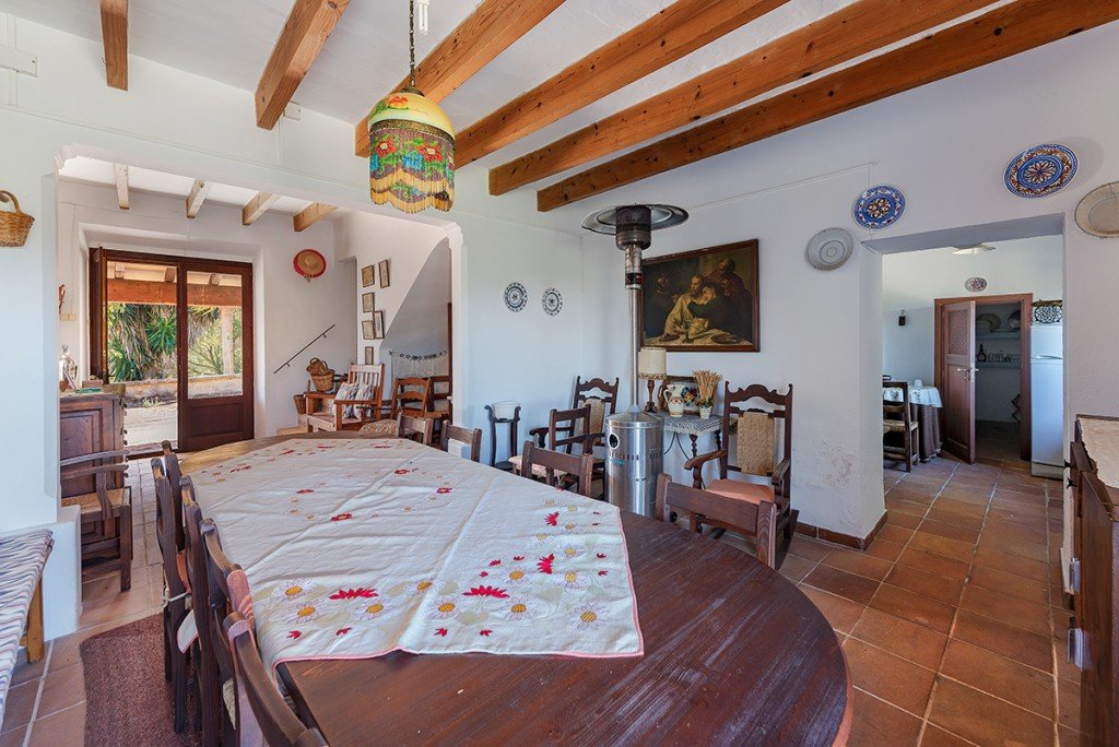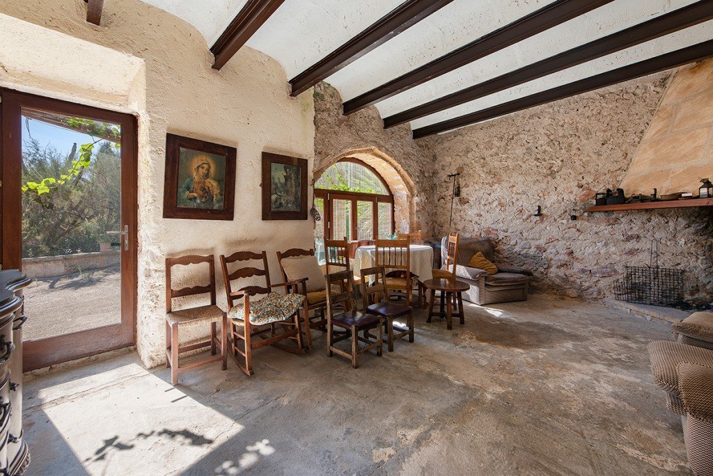 Das Anwesen besteht aus mehreren Gebäuden , die auf der Ostseite des 50 Hektar großen Grundstücks liegen. Das Haupthaus wurde teilweise zu einem Wohnhaus umgebaut, mit einer Mischung aus renovierten Innenräumen sowie rustikalen, unberührten Räumen. Die Innenräume umfassen ein Wohnzimmer, einen Speisesaal und eine Küche, alle im rustikalen Stil, mit einem Holzofen und traditionellen mallorquinischen Balken, die für eine gemütliche Atmosphäre sorgen. Das Haus strotzt nur so vor Potenzial und könnte mit minimalem Aufwand in ein beneidenswertes Landhaus umgewandelt werden.
