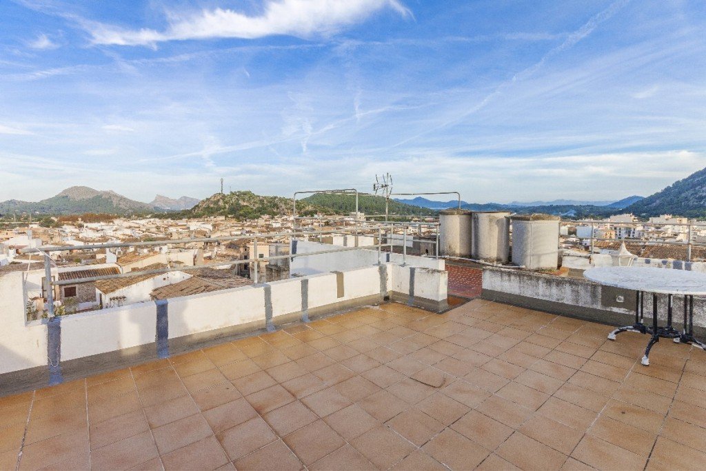 Derzeit befindet sich im Erdgeschoss ein großes Wohn- / Esszimmer mit Kamin, die Küche und eine Terrasse mit Außentoilette. Die erste Etage verfügt über 3 Schlafzimmer, ein komplettes Badezimmer, in der oberen Etage gibt es 2 weitere Zimmer und hier besteht die Möglichkeit, ein weiteres Familienbadezimmer zu installieren. Die Terrasse auf dieser Etage bietet einen 360 Grad Blick auf Pollensas Hausberg, den Puig de Maria, auf die berühmte Calvari-Treppe und einen teilweisen Blick auf die Bucht von Pollensa.