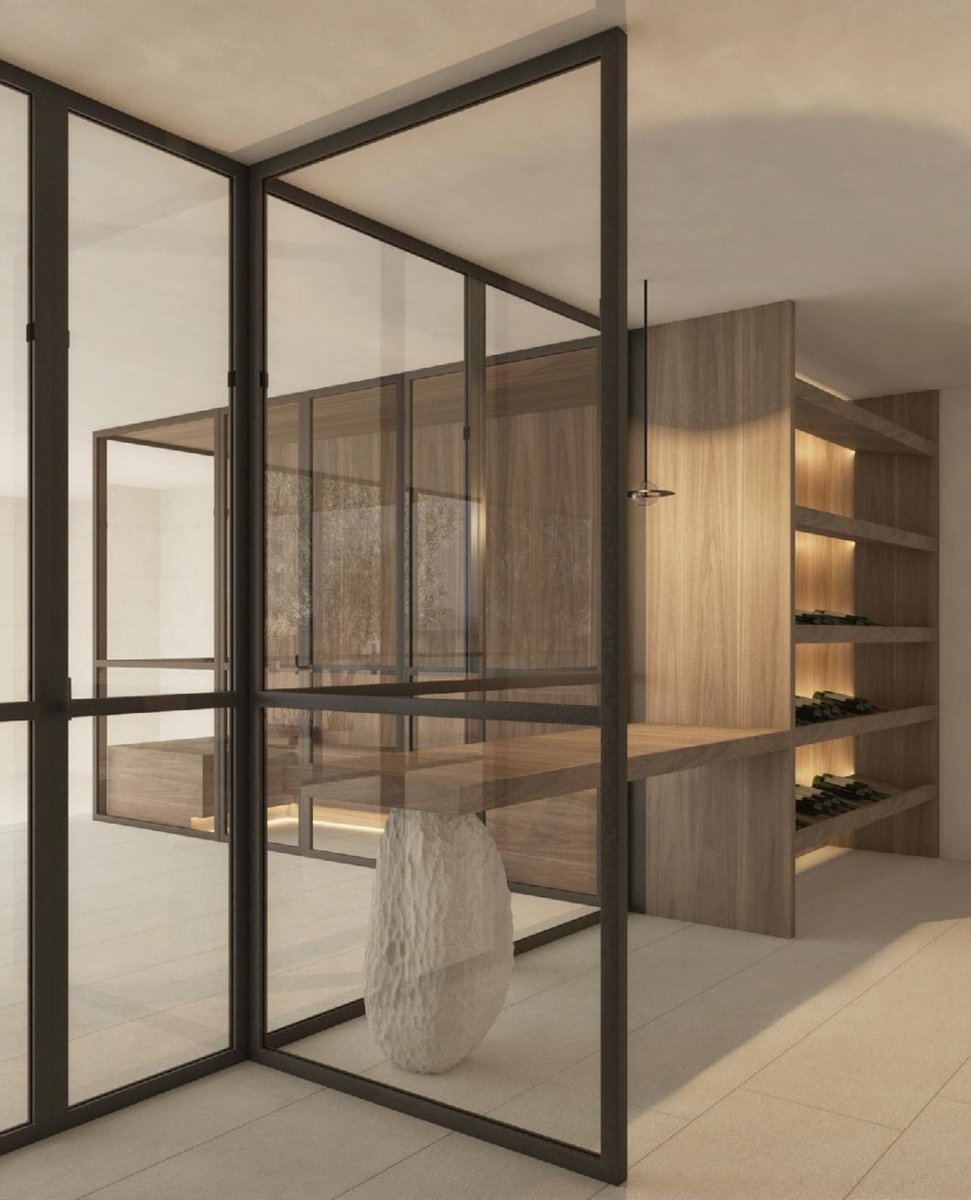 Außerdem gibt es ein Untergeschoss mit einem Weinkeller, einem Fitnessraum und einer Sauna.