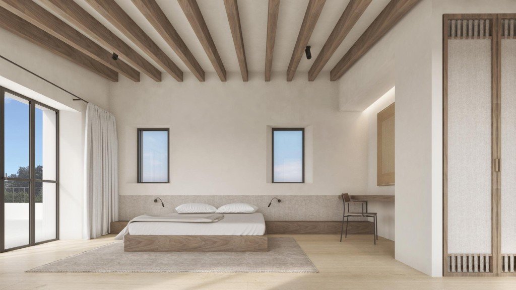 Im ersten Stock befindet sich ein luxuriöses Hauptschlafzimmer mit eigenem Bad, Ankleideraum und einer privaten Terrasse.