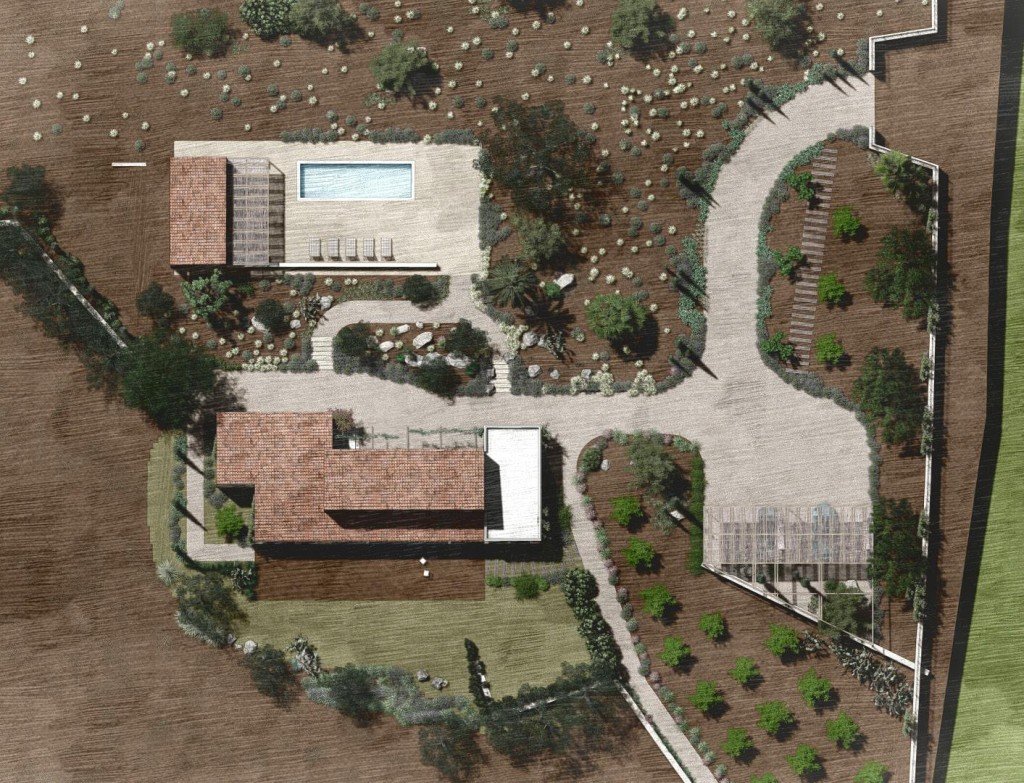Im Außenbereich befinden sich verschiedene Terrassen und ein privater Pool mit Liegewiese.