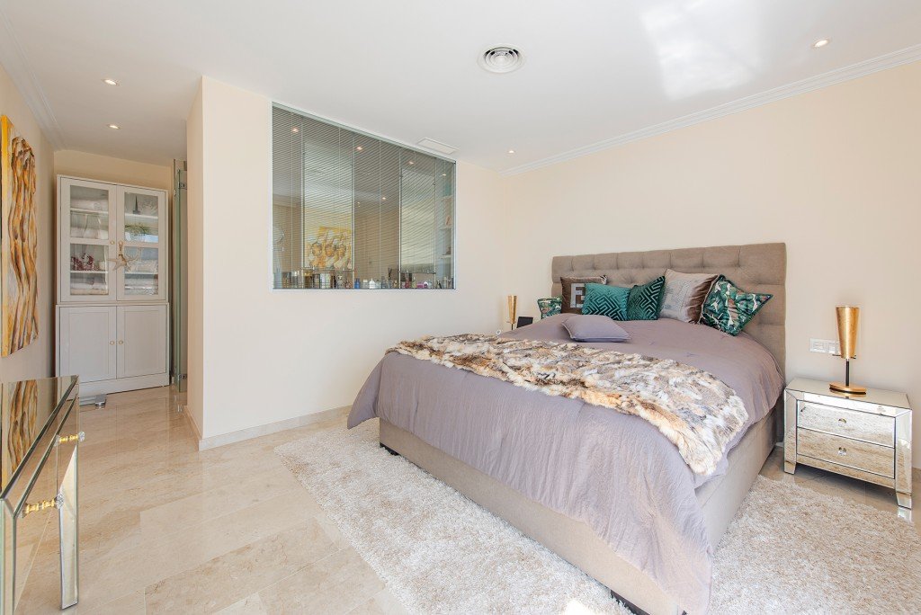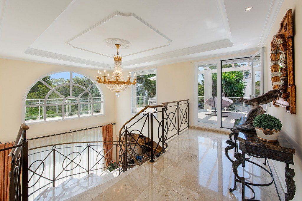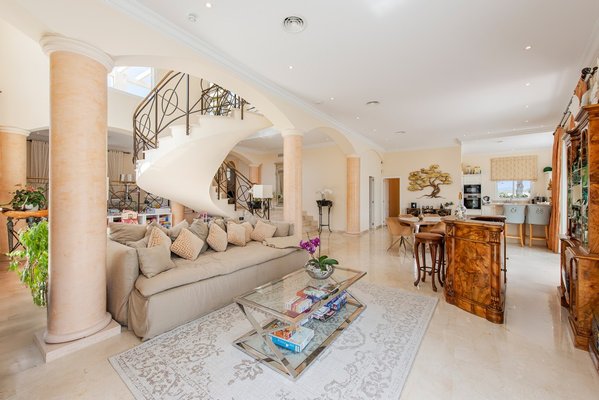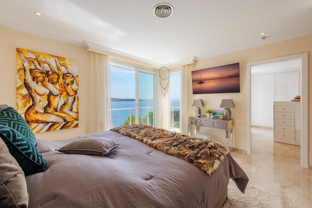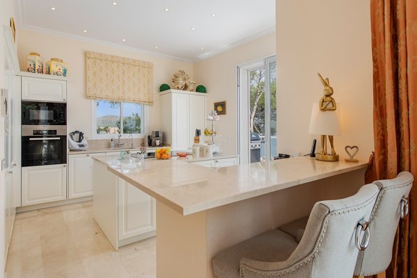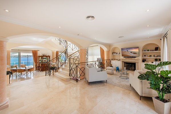 Auf einem großzügigen Grundstück von 1.464 m2 befindet sich diese einzigartige Villa mit einer bebauten Fläche von 487 m2, die eine offene Lounge mit einem Kamin auf der einen Seite und einen offenen Wohn- und Essbereich mit atemberaubendem Meerblick auf der anderen Seite bietet, der durch eine geschwungene Treppe, die zur oberen Etage führt, getrennt ist. Der Meerblick ist sowohl von der Küche als auch von den Schlafzimmern aus sichtbar. Die Villa bietet insgesamt vier Schlafzimmer, vier Badezimmer, eine Sauna, eine Waschküche, eine Garage, einen wunderschön angelegten Garten mit großem Pool, mehrere überdachte und sonnige Terrassen und Nachbarn nur auf einer Seite (die andere Seite bietet eine schöne Grünfläche).