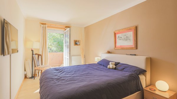 Von der Diele gelangt man über einen zentralen kleinen Vorraum in zwei Schlafzimmer, jeweils mit Austritt auf den Balkon sowie das komfortable Badezimmer.