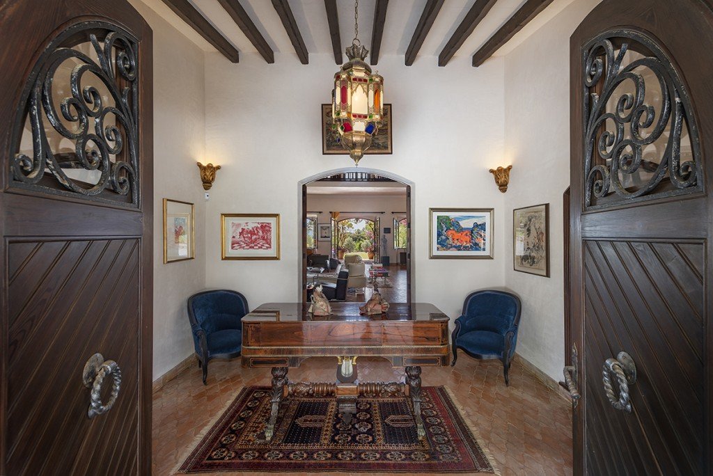Das Haus wird durch einen zentralen formalen Eingang, Flur betreten und führt direkt bis zum Hauptwohnraum mit doppelter Deckenhöhe, einer Galerie und einer oberen Terrasse. Der Wohnraum ist wahrlich beeindruckend und der Mittelpunkt des Hauses. Die Schlafzimmer-Suiten, Gästewohnung und Küchen sind auf die beiden Flügel, zu beiden Seiten des Wohnzimmers, verteilt. Die 800m2 Wohnfläche bietet sehr flexible und vielseitige Aufenthaltsmöglichkeiten und müssen wirklich gesehen, um geschätzt zu werden. Im traumhaften Aussenbereich befindet sich der Garten, der flach, offen und perfekt gepflegt ist. Der gut geplante Swimming Pool verfügt über viele verschiedene Ebenen und ist ideal zum Sitzen, Entspannen und Schwimmen geeignet.