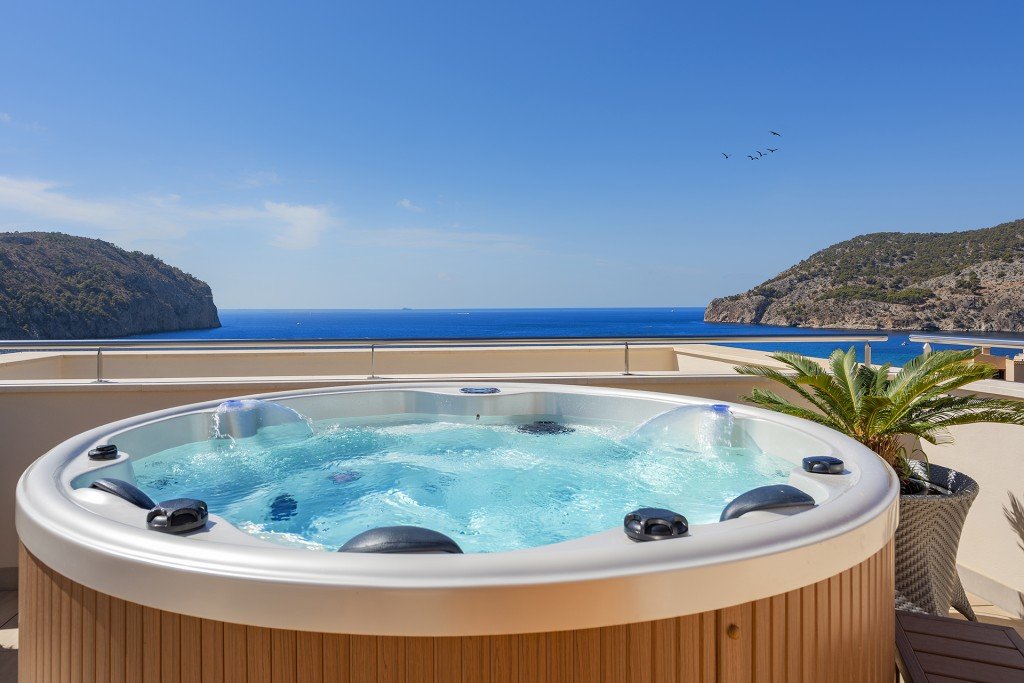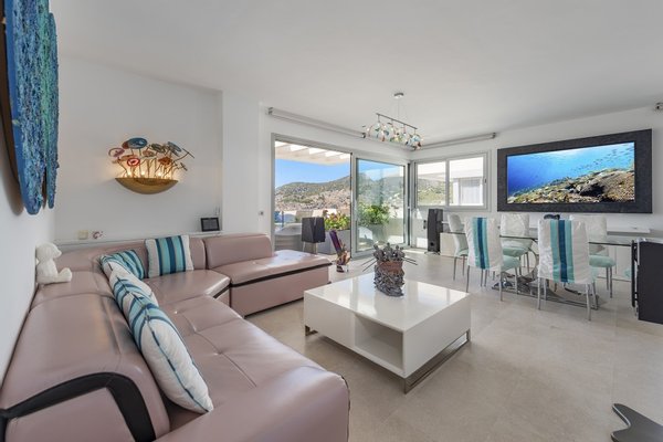 Von der Dachterrasse aus hat man einen herrlichen Blick auf das Meer und das gesamte Tal von Camp de Mar.
