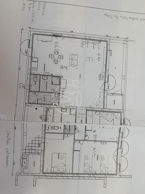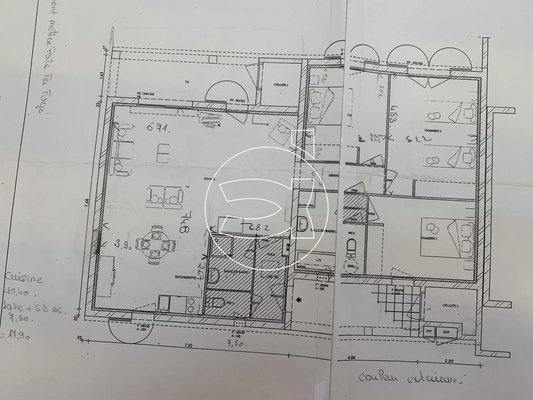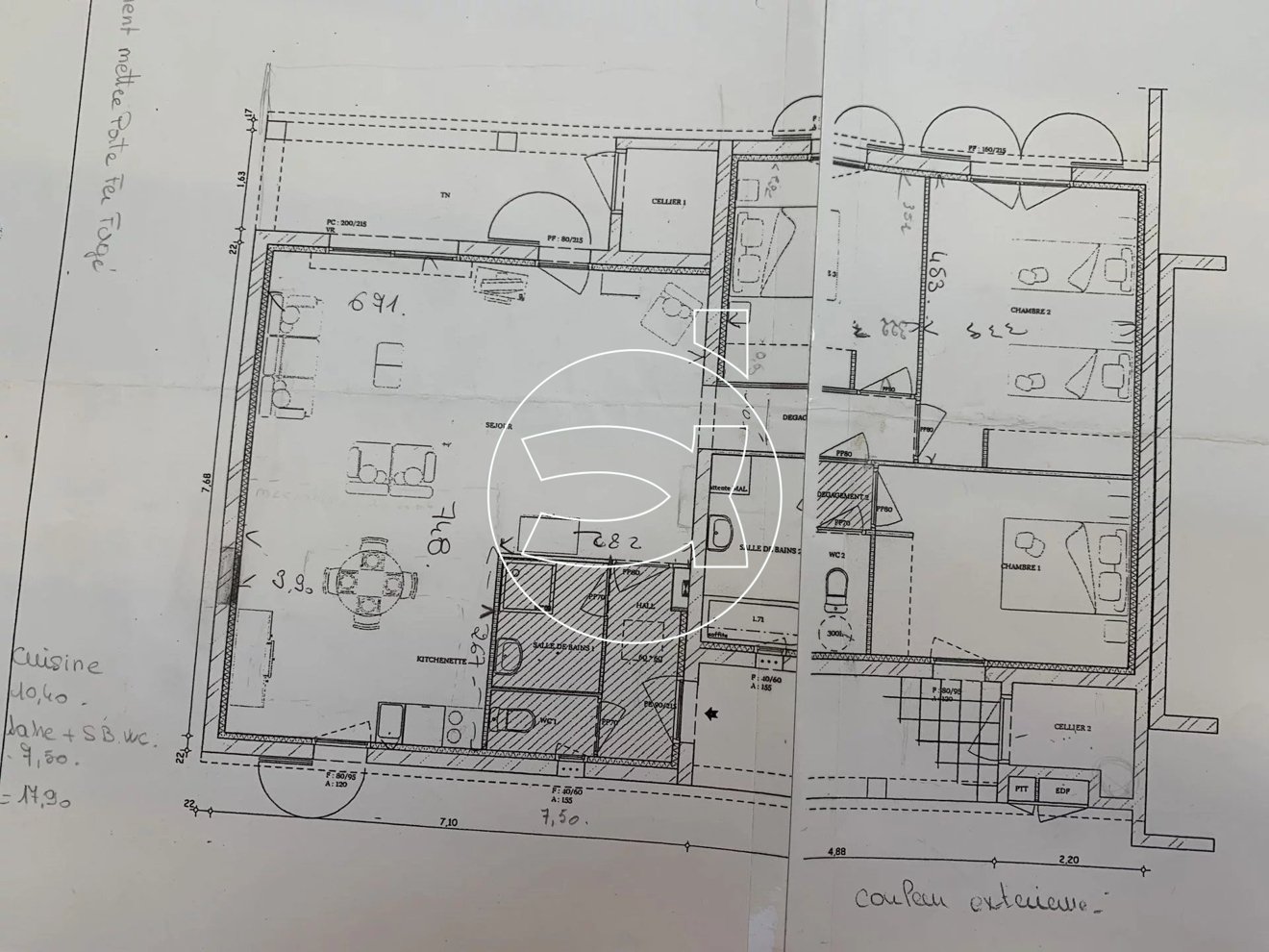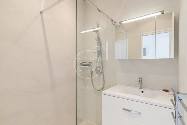 Sie besteht aus einem Eingangsbereich, einem hellen Wohn-/Esszimmer, einer Einbauküche, zwei Schlafzimmern mit Einbauschränken, einem Büro mit einem Zwischengeschoss von 26m², zwei Duschräumen und zwei separaten Toiletten.