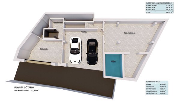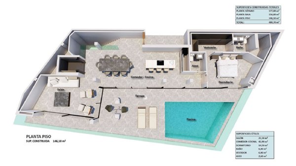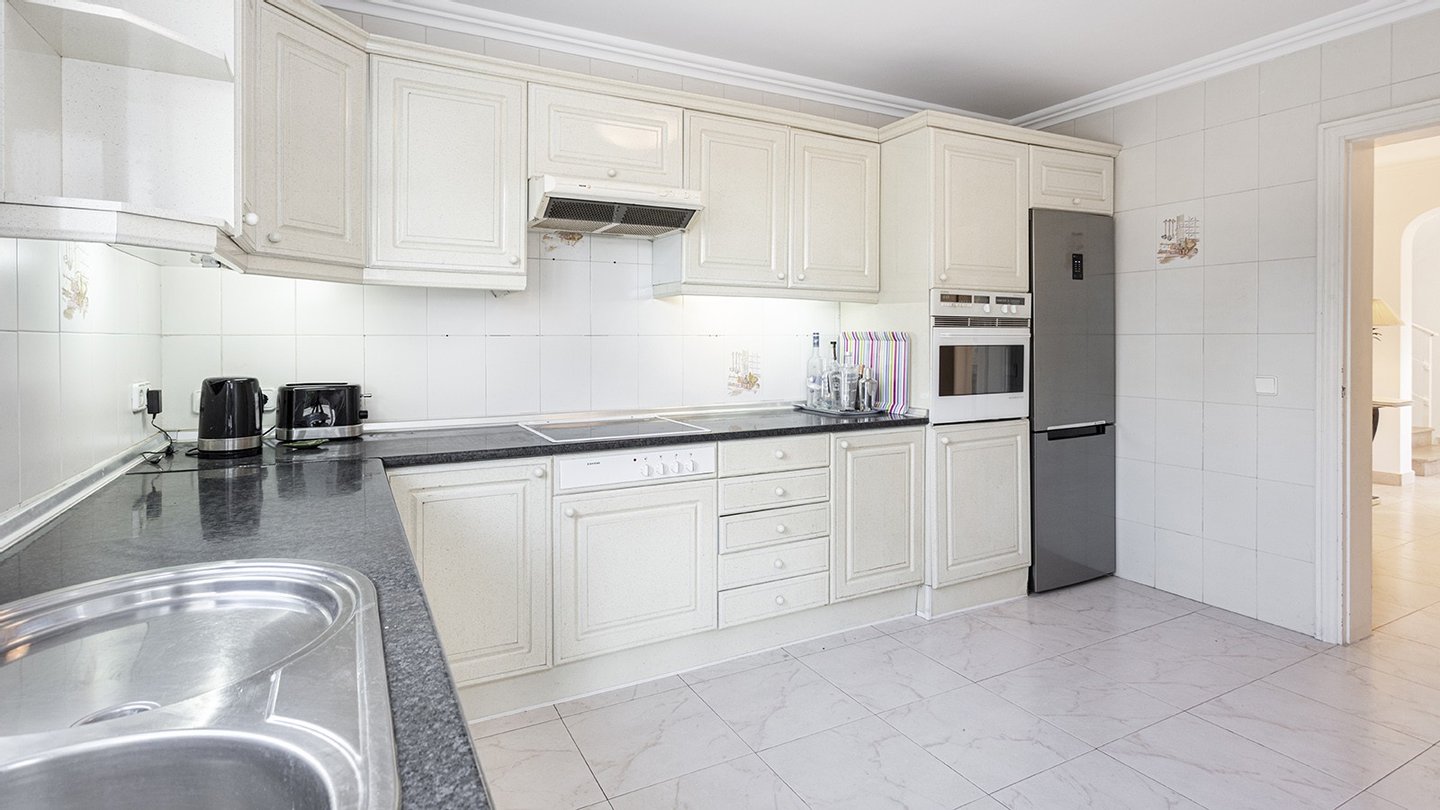 Von einem erfahrenen Bauunternehmen gestaltet, besticht die Villa durch ein modernes Design, ein offenes, lichtdurchflutetes Wohnkonzept und höchste Qualität. Die Mallorca Immobilie befindet sich auf einem ca. 862 m2 großen Grundstück und verfügt über eine bebaute Fläche von ca. 480 m2, davon beläuft sich die reine Wohnfläche auf ca. 303 m2. Die Neubauvilla teilt sich auf in ein großzügiges Wohnzimmer mit Essbereich, eine offene Einbauküche mit Elektrogeräten, 4 Doppelschlafzimmer, 4 Badezimmer, alle davon en Suite, einen Ankleidebereich, einen Technik- und Wirtschaftsraum, sowie ein Gäste-WC. Von der oberen Wohnebene genießen Sie einen herrlichen Panoramablick über die Landschaft bis hin zum türkisfarbenen Meer. Die Villa enthält folgende exklusive Ausstattungsmerkmale: doppelverglaste Fenster, Fußbodenheizung, Klimaanlage w/k, Telefonanschluss, SATV TV und vieles mehr. Das Highlight der Immobilie ist der einladende Swimmingpool umrandet von Sonnenterrassen. Die Neubau Immobilie beinhaltet ebenfalls eine Doppelgarage, die das Immobilienangebot Mallorca abrundet.