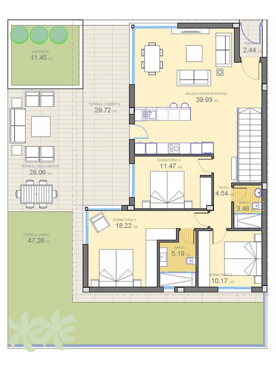 Diese hübschen Villen verfügen über eine konstruierte Fläche von ca. 248 m² (inklusive Terrassen) mit