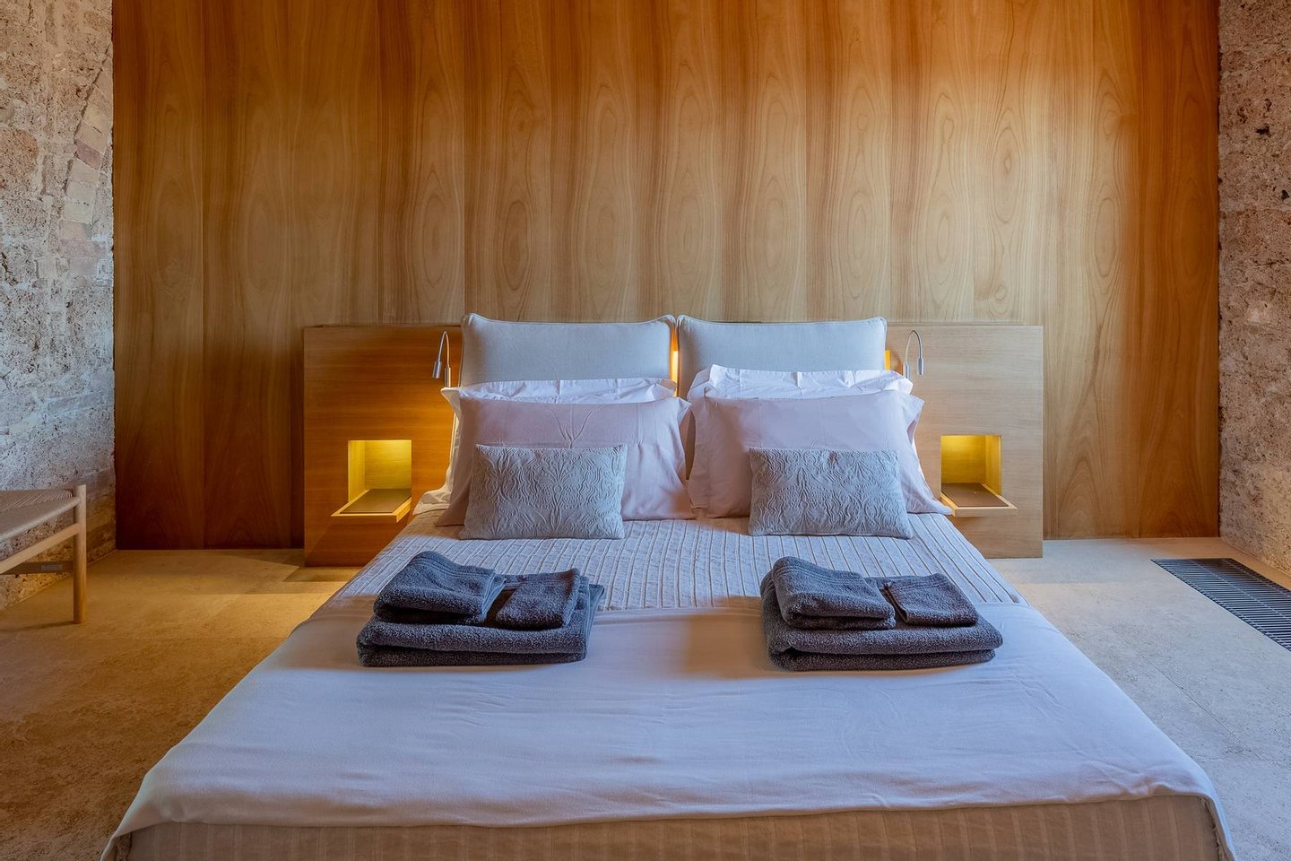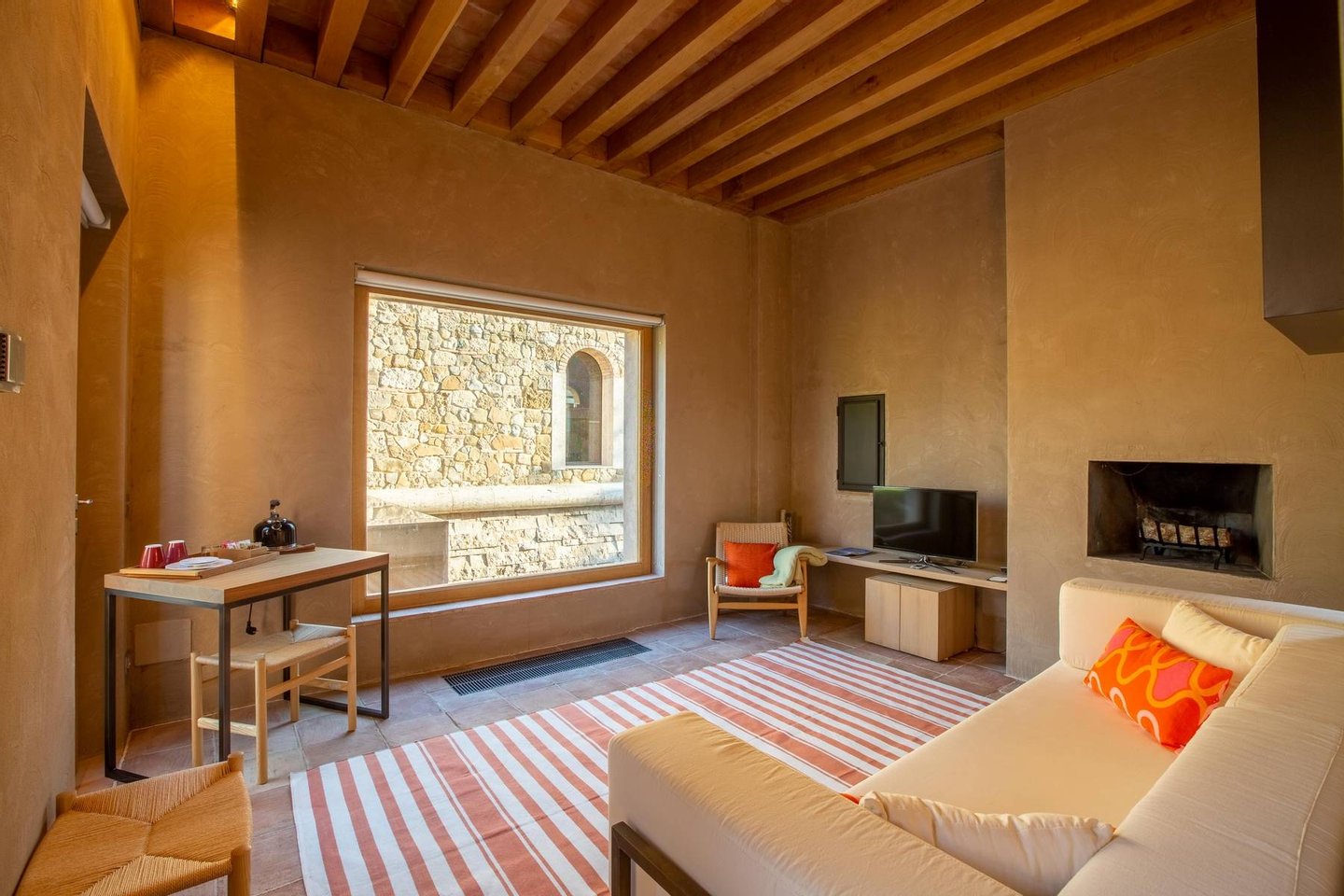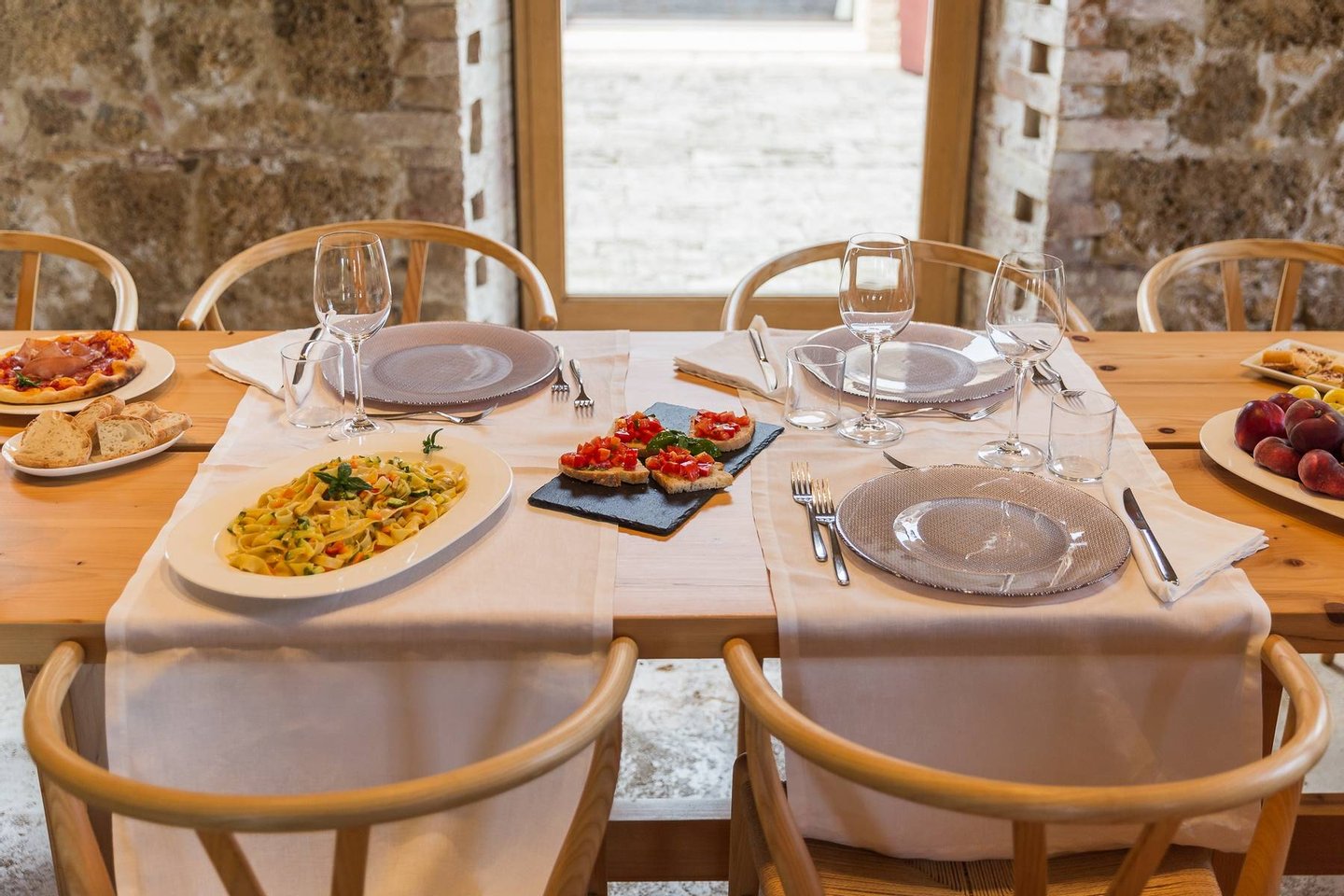 Podere Etrusco is structured around an ancient farmhouse made of travertine blocks, the style of the entire complex