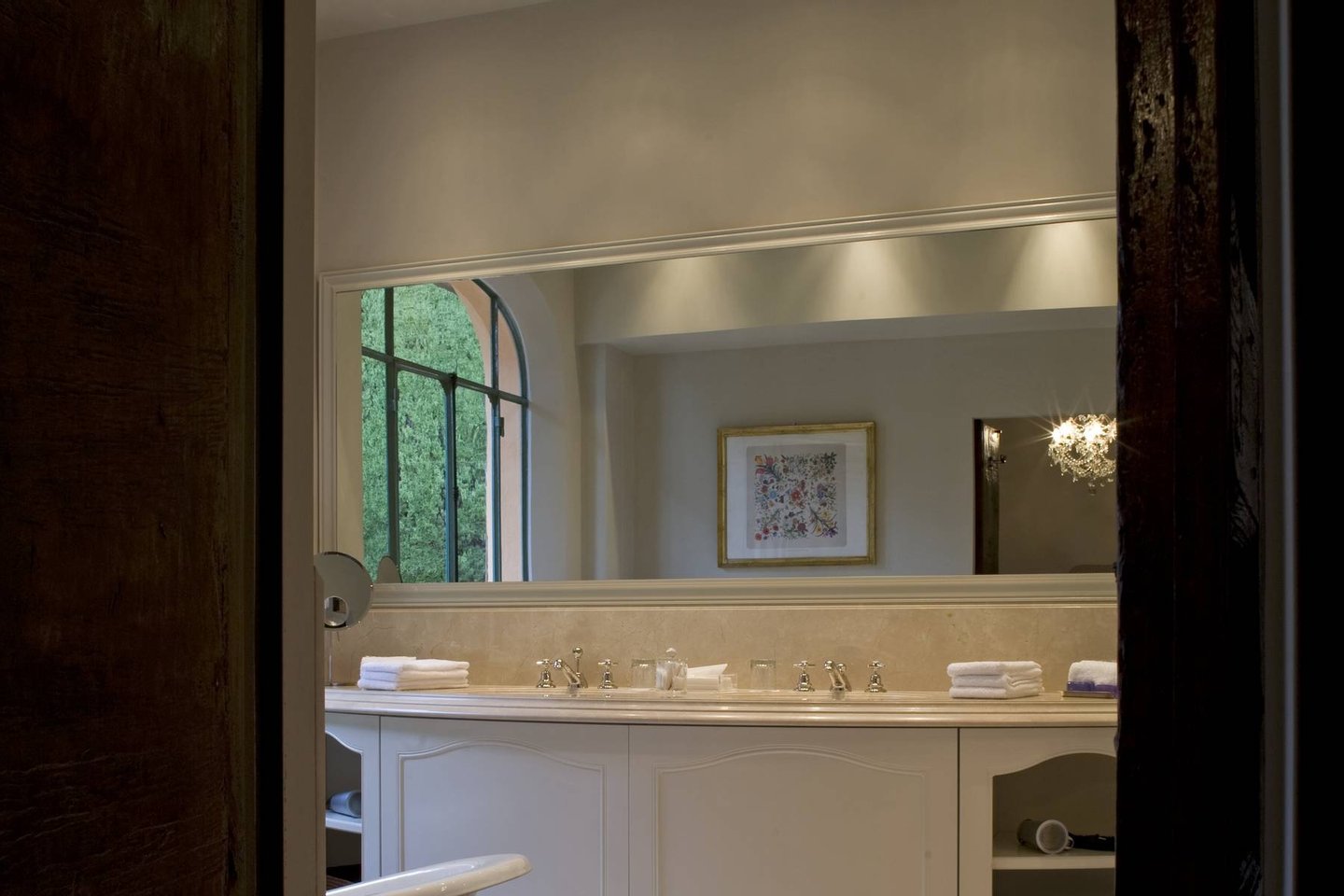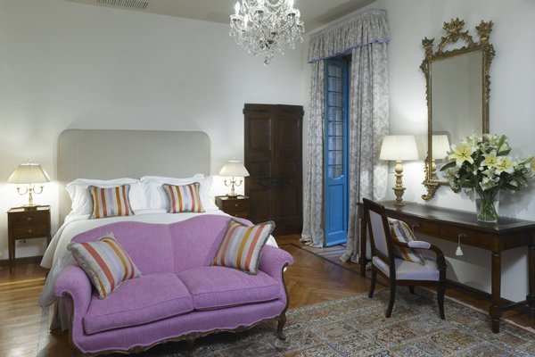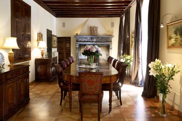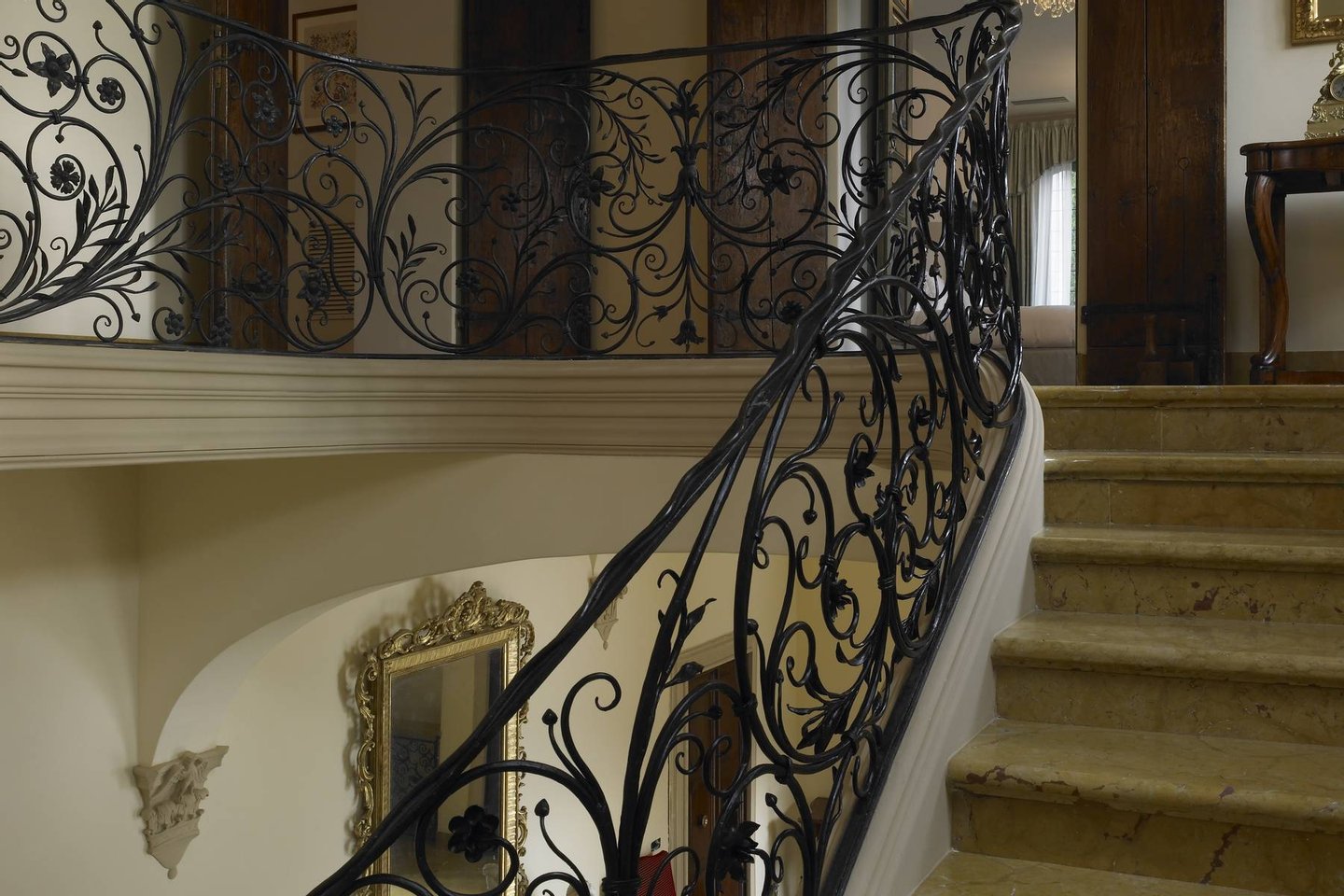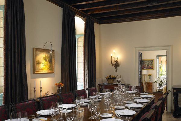 The estate consists of three houses, all offering first class modern facilities complemented by the finest Italian antique furniture, and artwork from all over Europe. The main villa has two elegant floors offering a combination of both living areas and sleeping quarters. Within the main house, guests are greeted by a great foyer featuring Senese marble floors and elegant wrought iron railing, a formal living room with wooden floors, a marble fireplace and ample seating. The living room connects to a covered terrace where guests can leisurely dine al fresco. The main villa also features an elegant dining area with ample seating and working fireplaces, which is connected to a pantry and professional kitchen.