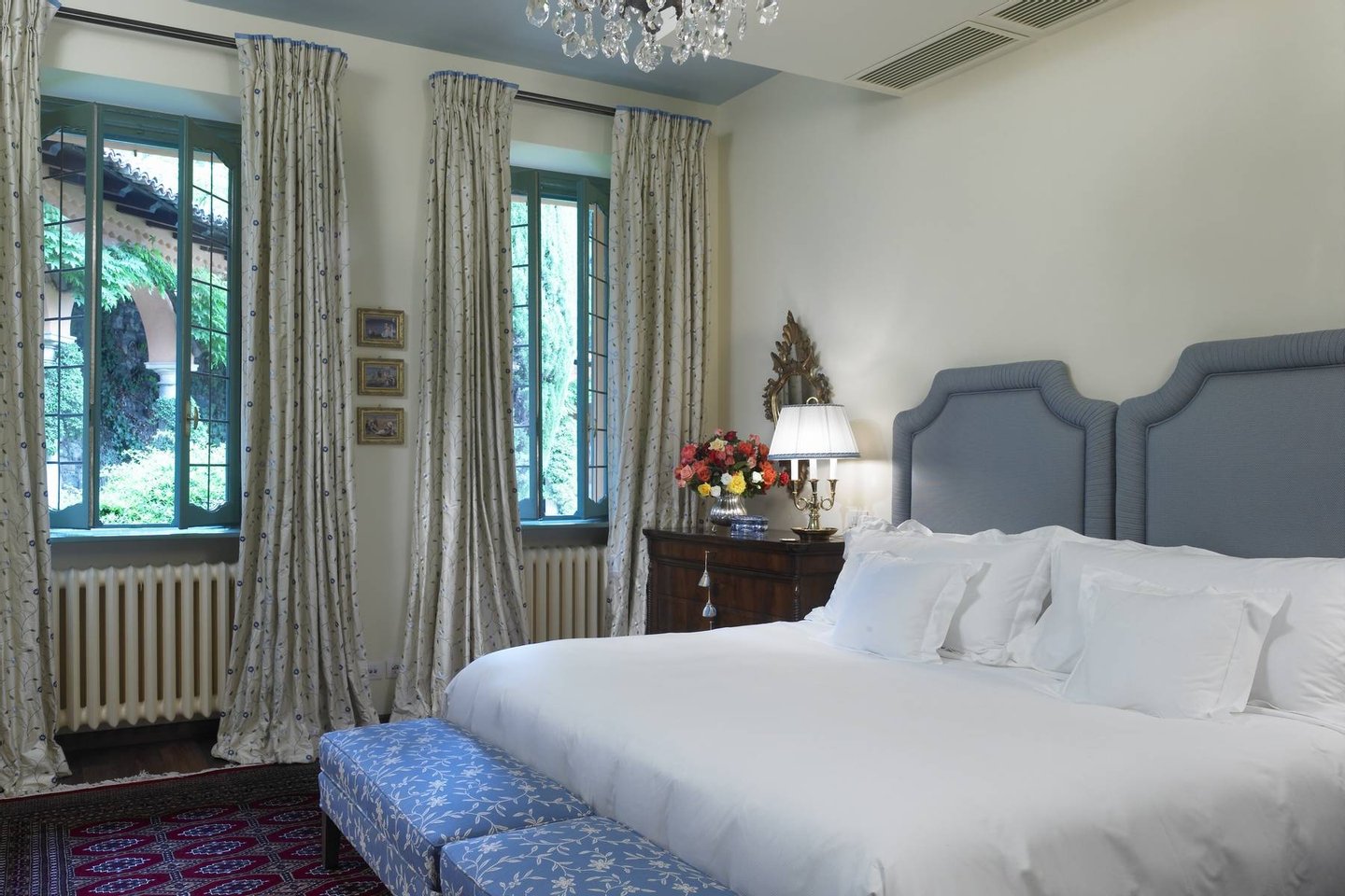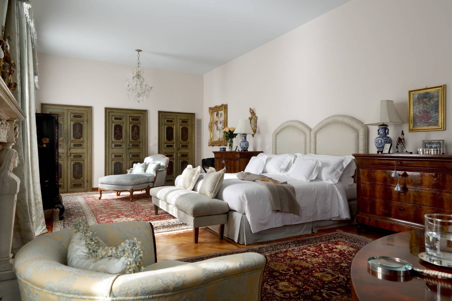 Each of the 17 possible guests will enjoy unsurpassed levels of style and comfort. The main villa includes 6 bedrooms, hosting up to 13 people. The ancillary house of the estate, elegantly decorated with all modern amenities, features a living room and kitchen, the workout facility and spa area, and two double bedrooms with lake or mountain views, and en-suite bathrooms.