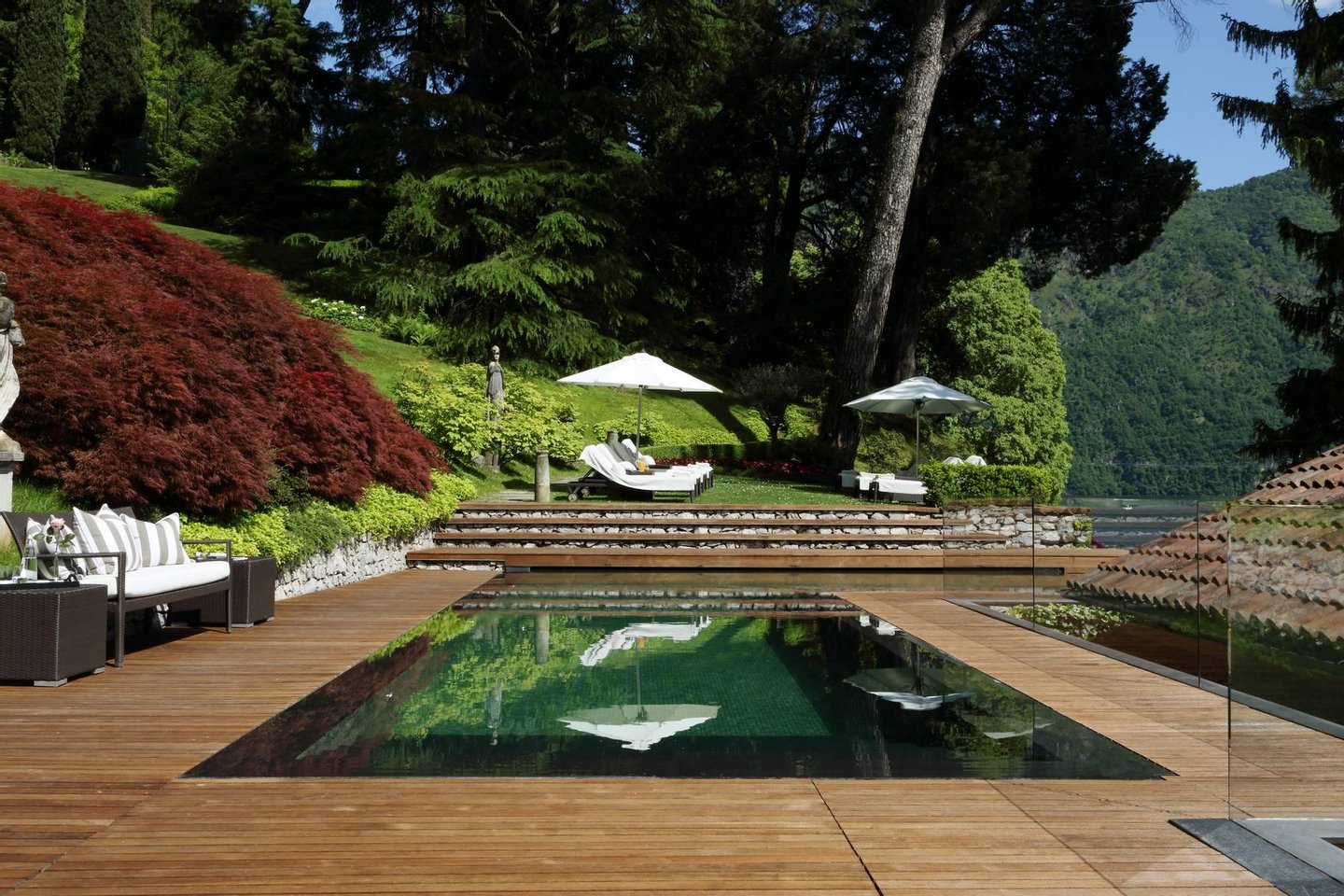 The villa is located in the shadow of the snow-covered Rhaetian Alps and surrounded on both sides by steep, verdant hillsides. The exquisite villages of Bellagio and Blevio are both nearby. In addition, it is conveniently located close to the main towns are Como and Lecco. The area has been a popular retreat for aristocrats since Roman times. Therefore, the area is replete with architectural masterpieces such as Villa Olmo, Villa Serbelloni and Villa Carlotta. The surrounding area provides a wide range of activities including water skiing, wind surfing, cooking lessons, phenomenal shopping, golfing, boat trips, rock-climbing, mountain biking, horse riding, and canoeing/kayaking.