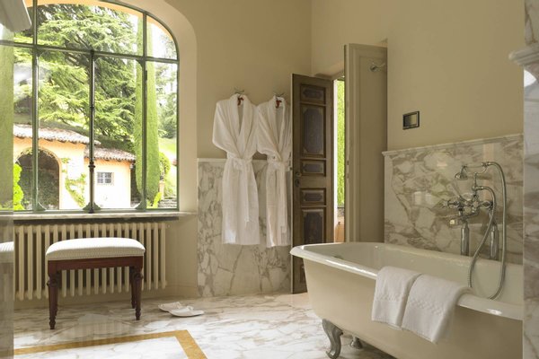 The villa itself offers plenty of entertainment. A heated infinity pool, adorned with 22-carat gold reflective tiles, and a floodlit tennis court are just the highlights among the gorgeous outdoor facilities. In addition, there or 30,000 square meters of garden area, which includes private walking paths, a pizza oven and barbeque area, a teak deck, outdoor dining areas and lounge areas, all with mesmerizing views of Lake Como and its surroundings. Adjacent to the swimming pool is a house which boasts a modern cinema, a Technogym equipped gym, and a spa style bathroom.