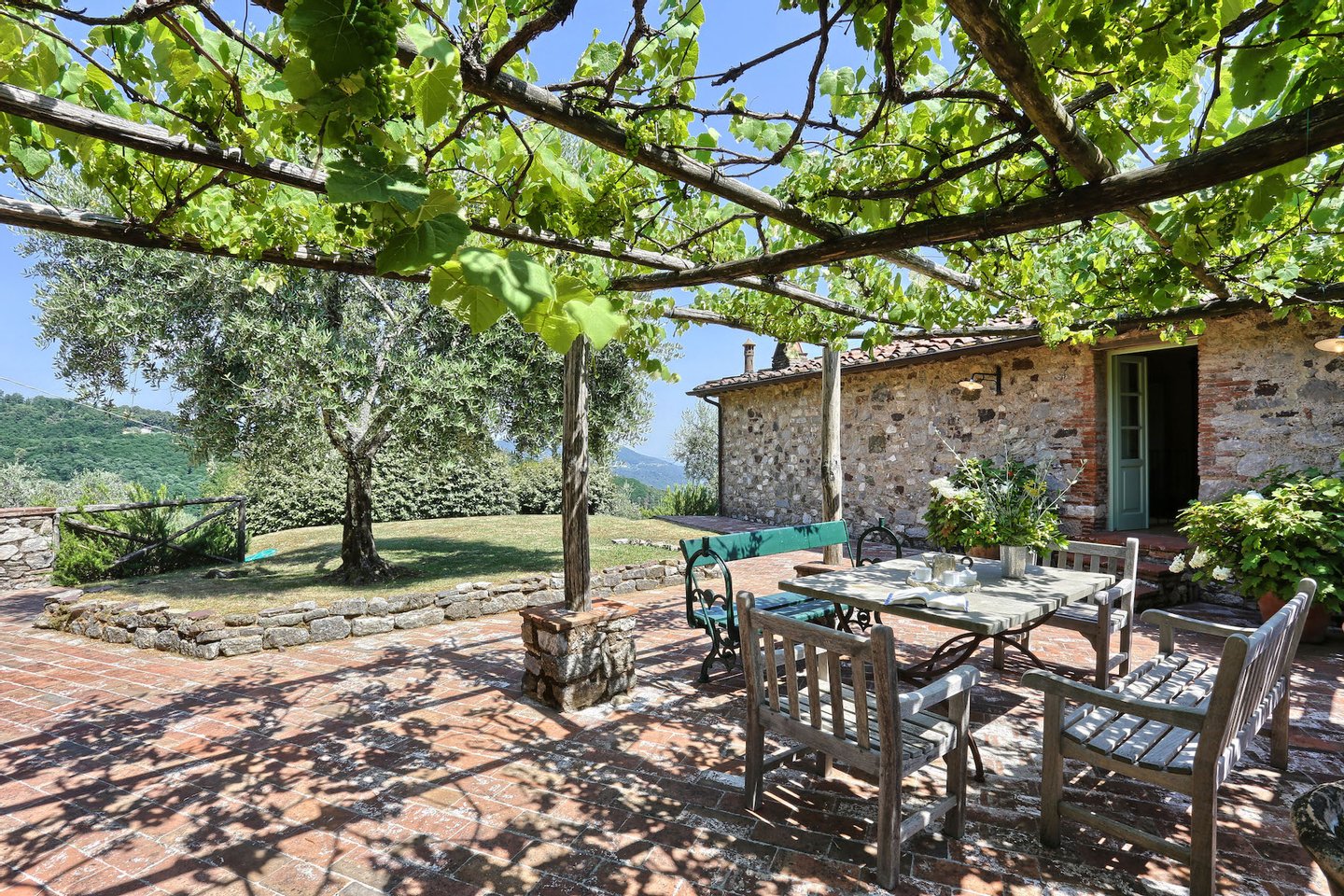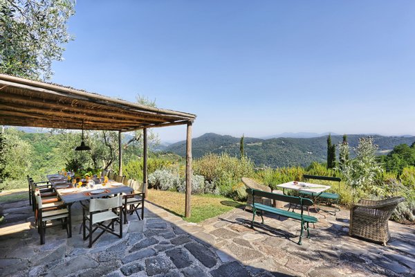 ...mehr lesenVilla Gladiolo is located in an exceptionally panoramic position among olive groves, in the hills between Lucca and the Versilia coast. The villa was meticulously restored from what were formerly an olive mill and a barn, now connected by a large entrance hall and terrace, in an impressive stone-built building.