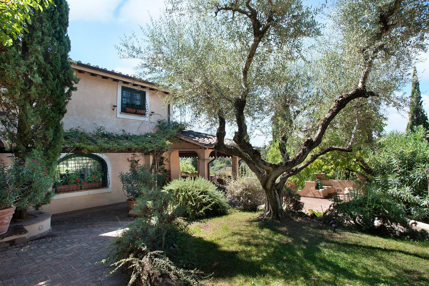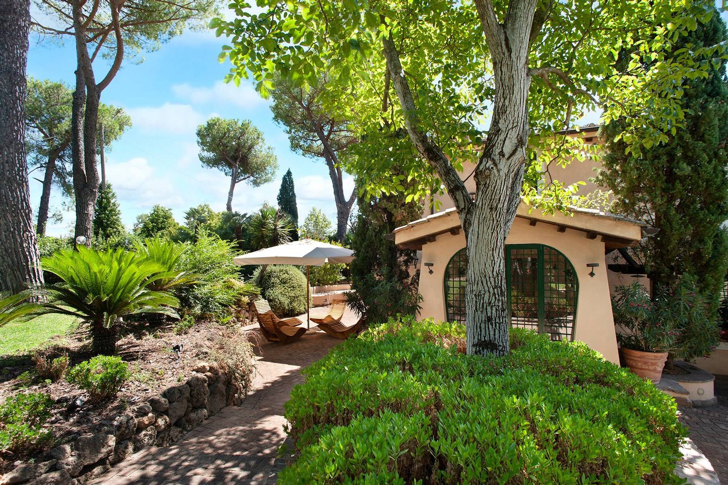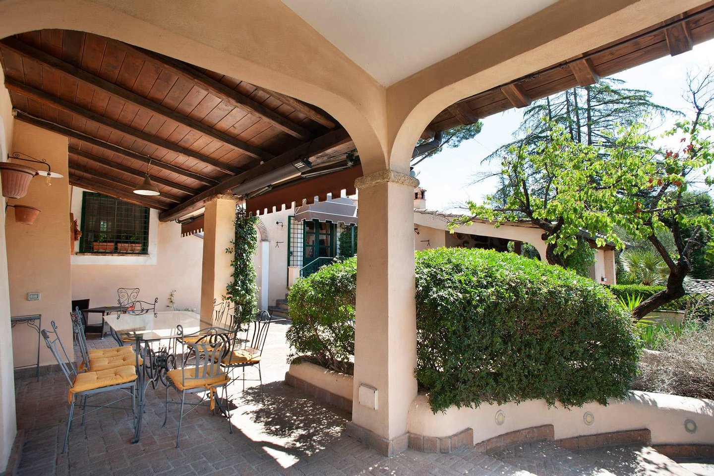 Luxury villa half an hour from Rome, with a private park of about 4,000 square meters, porches and panoramic terrace. In addition, two independent outbuildings, for guests and service staff.