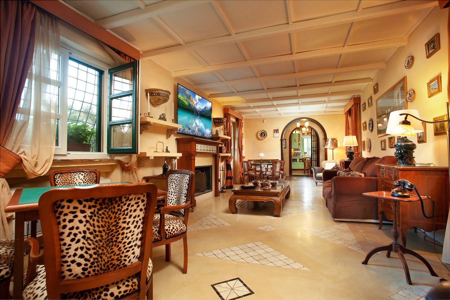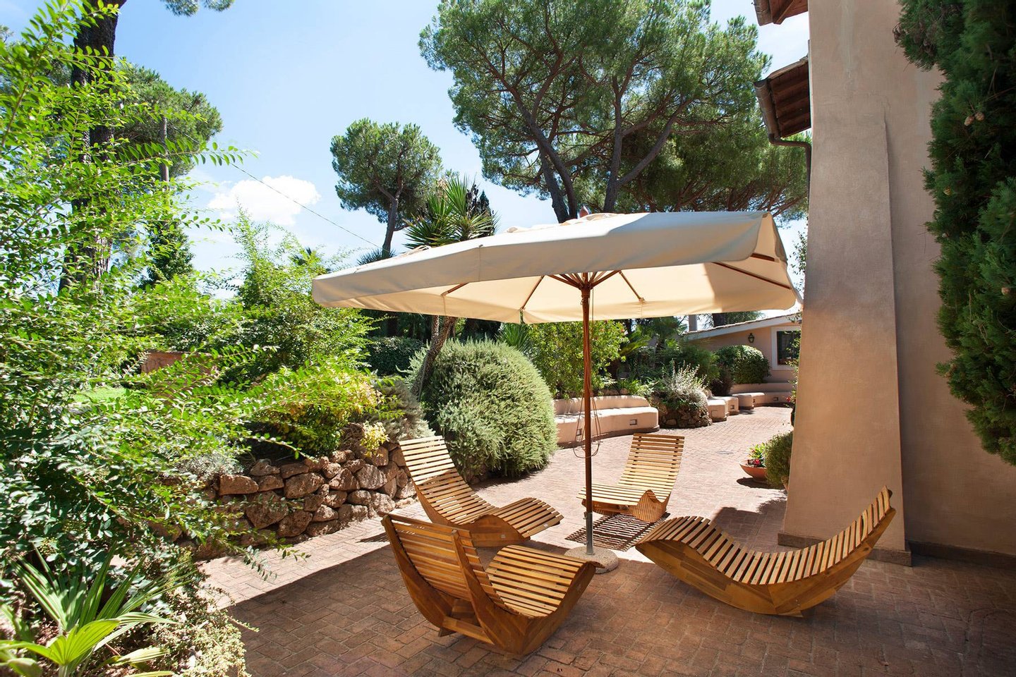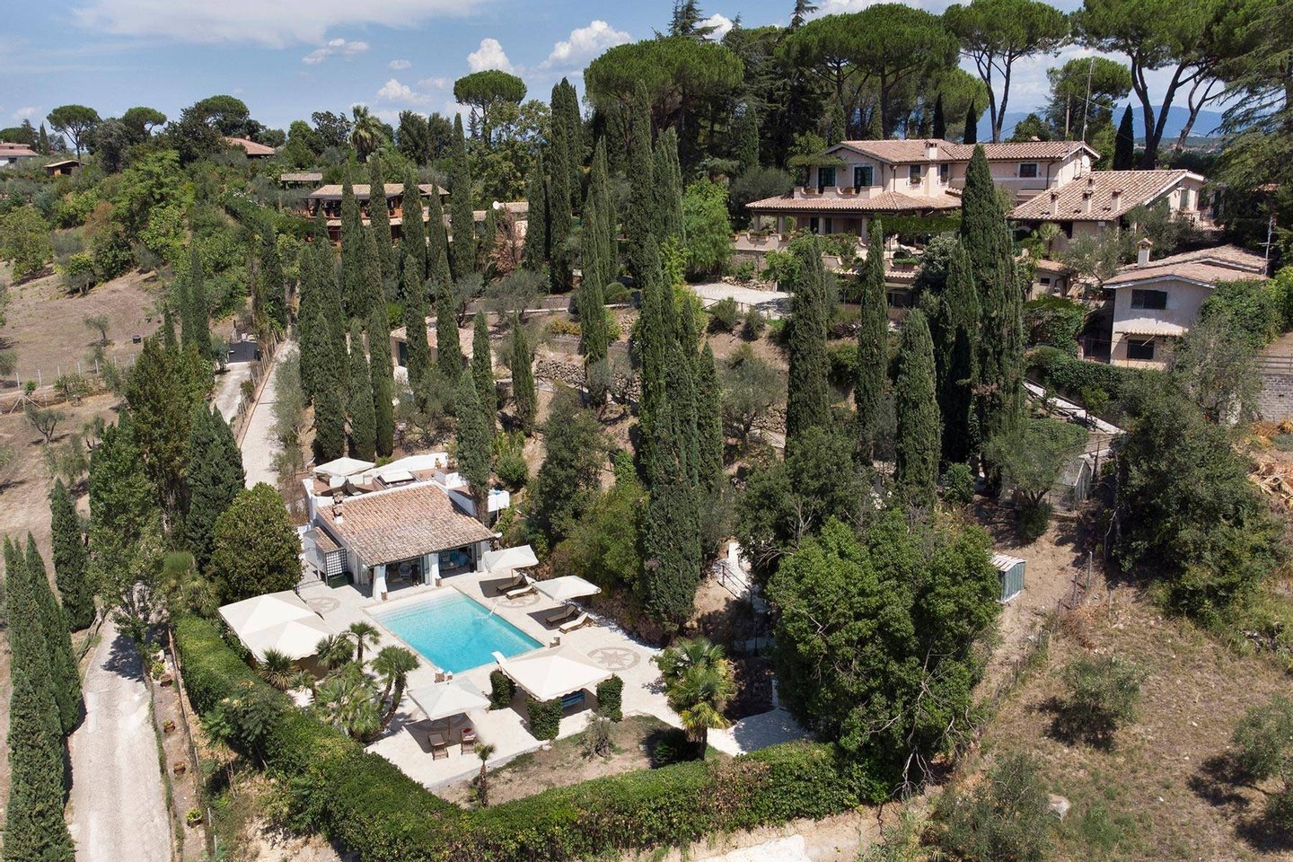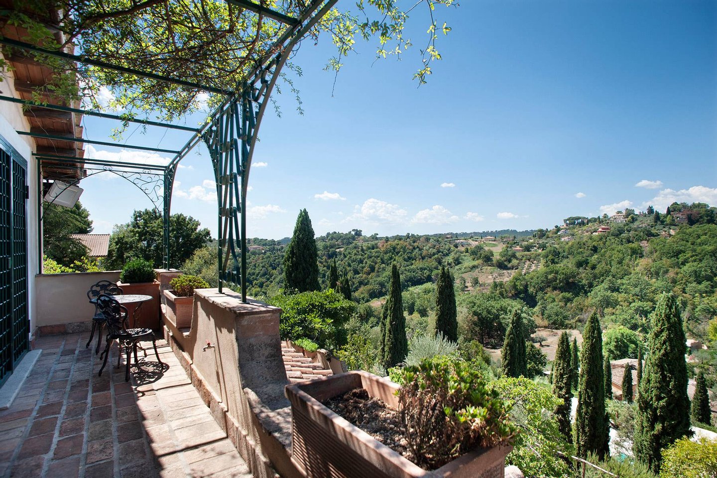 Luxury villa half an hour from Rome, with a private park of about 4,000 square meters, porches and panoramic terrace. In addition, two independent outbuildings, for guests and service staff.