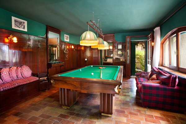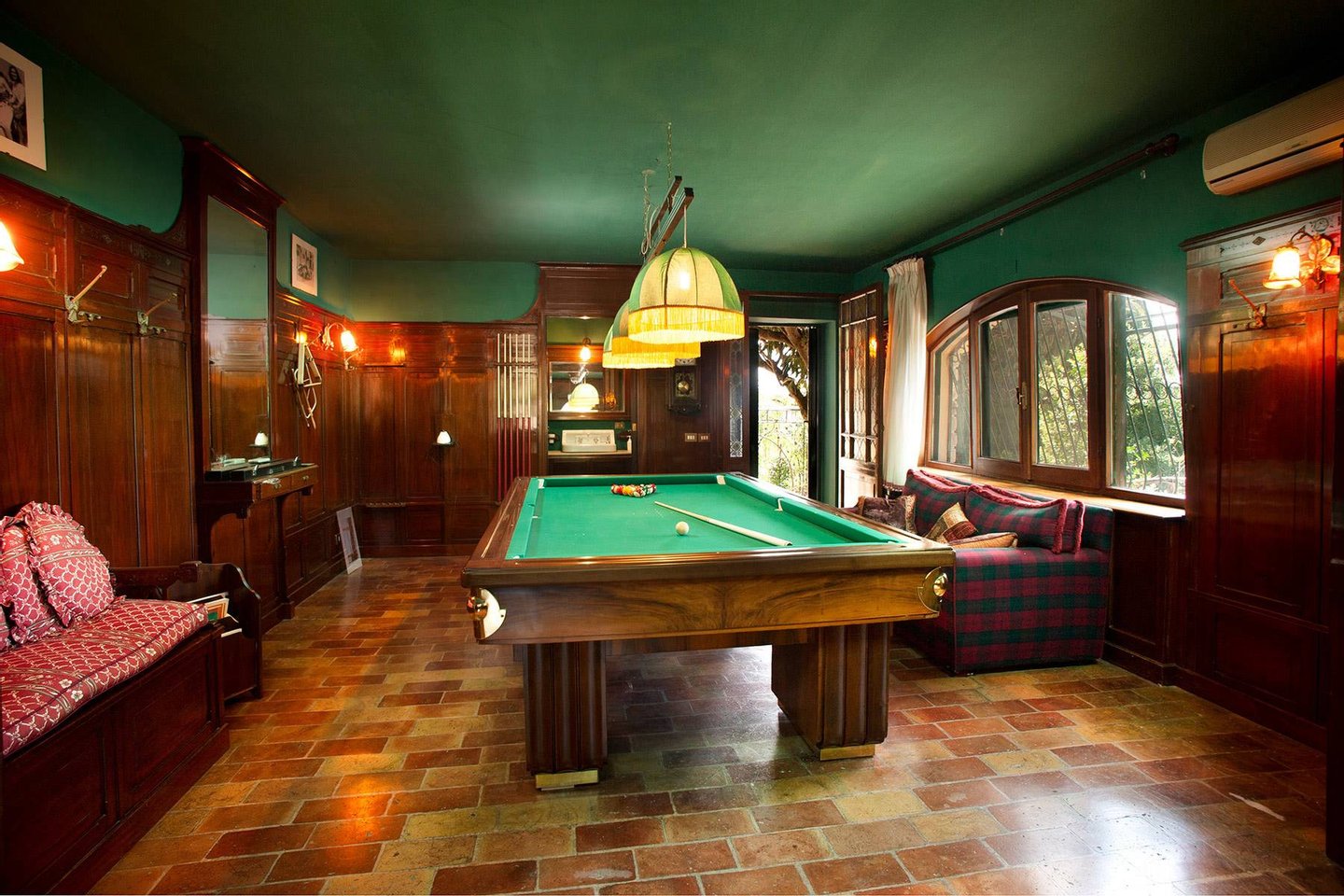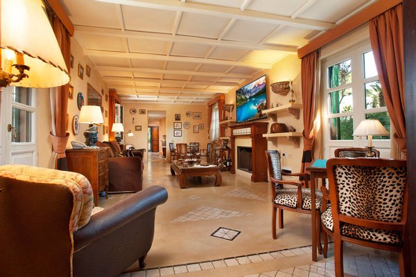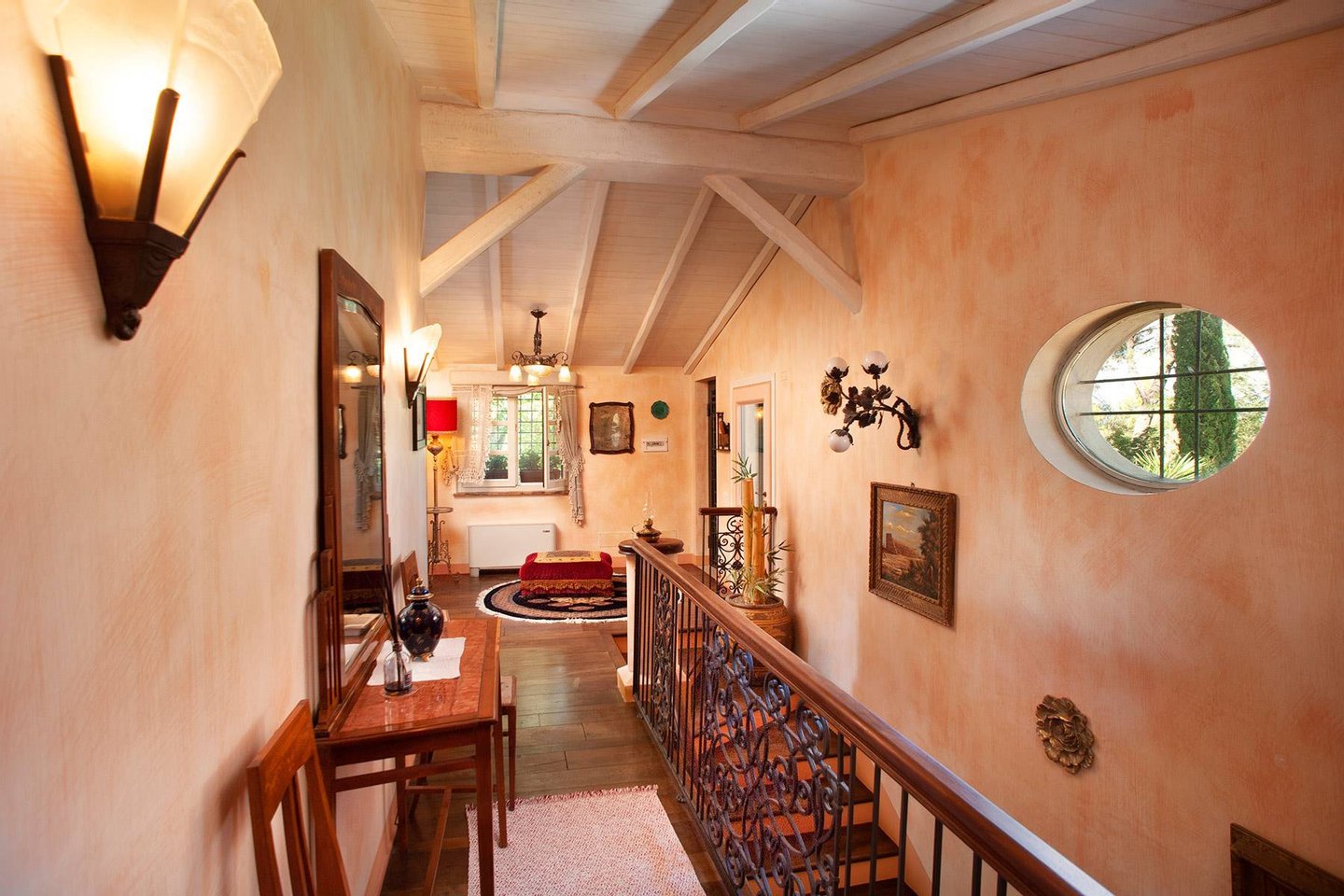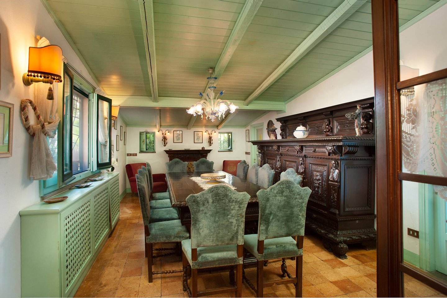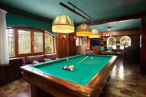 In the basement, one finds another bedroom, a bathroom, the pantry and a large garage. This area is connected to the panoramic terrace, used partly as a billiard room and partly as a study / reading room, with bathroom.