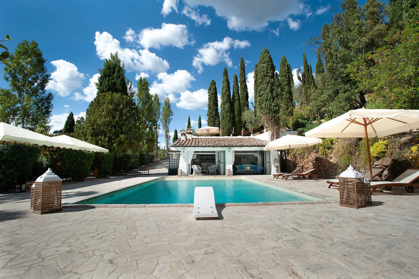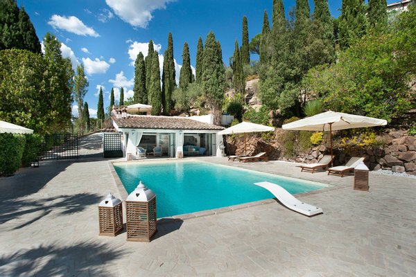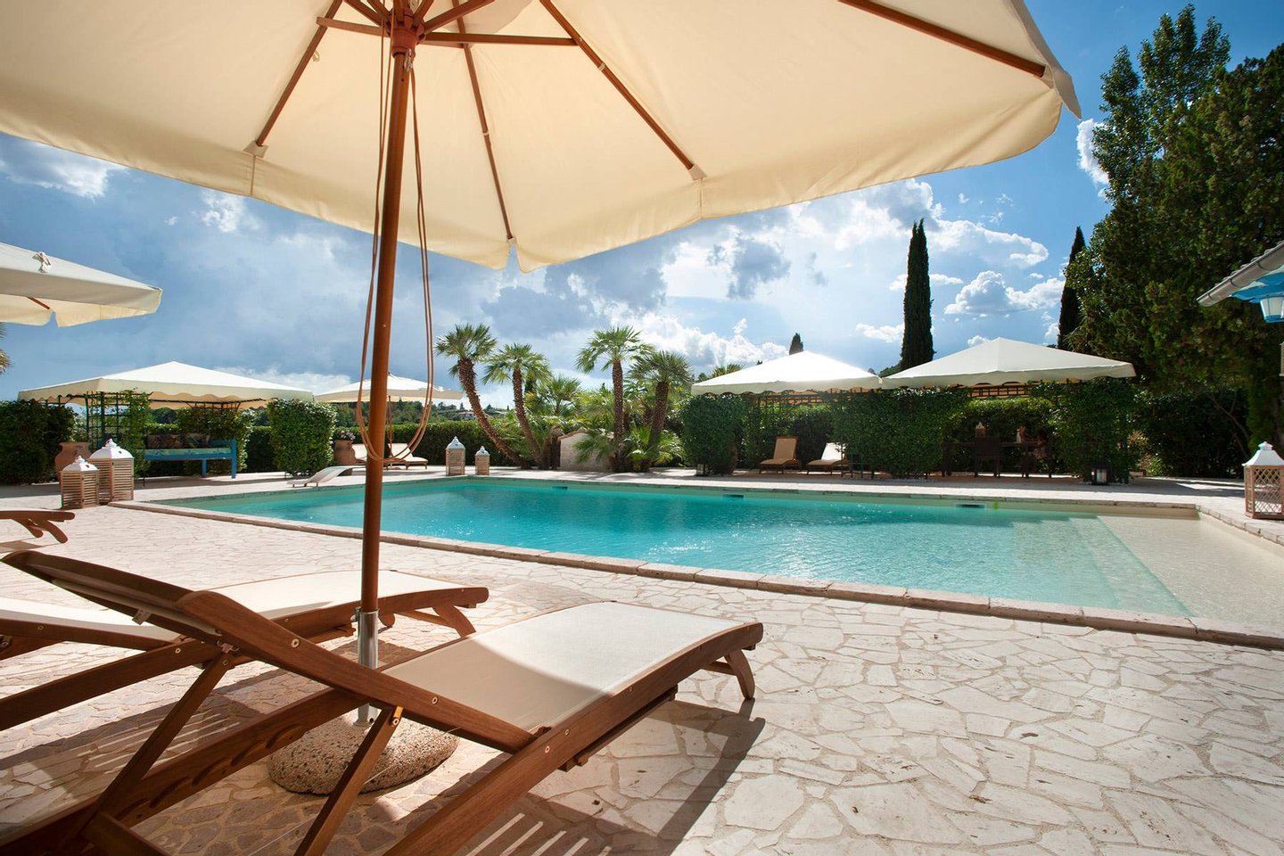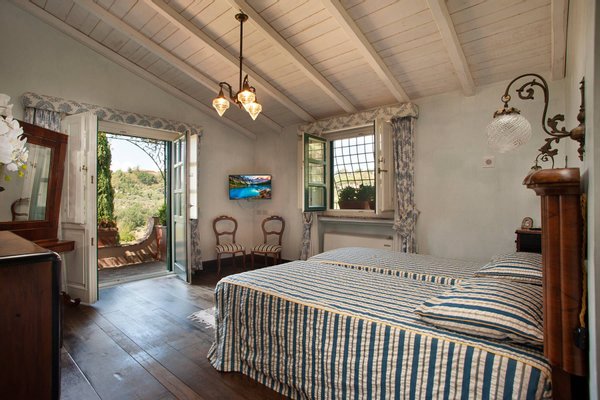 The villa is surrounded by a private park (4,000 square meters). The whole area around the villa has been arranged beautifully, with squares and paved paths that lead to all structures. Pleasant are the porches that constitute in spring and summer an extension of the living area. A large terrace with magnificent wisteria in front of the living area of the villa offers a beautiful view of the countryside: an ideal place for outdoor lunches and dinners in the summer season. The property also has two pizza ovens, one by the salt water pool and the other near the villa. A wonderful chef who has worked with Heinz Beck is included in the rental, and to top it off, a pizza chef is available once a week.