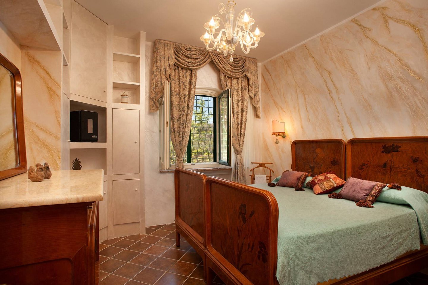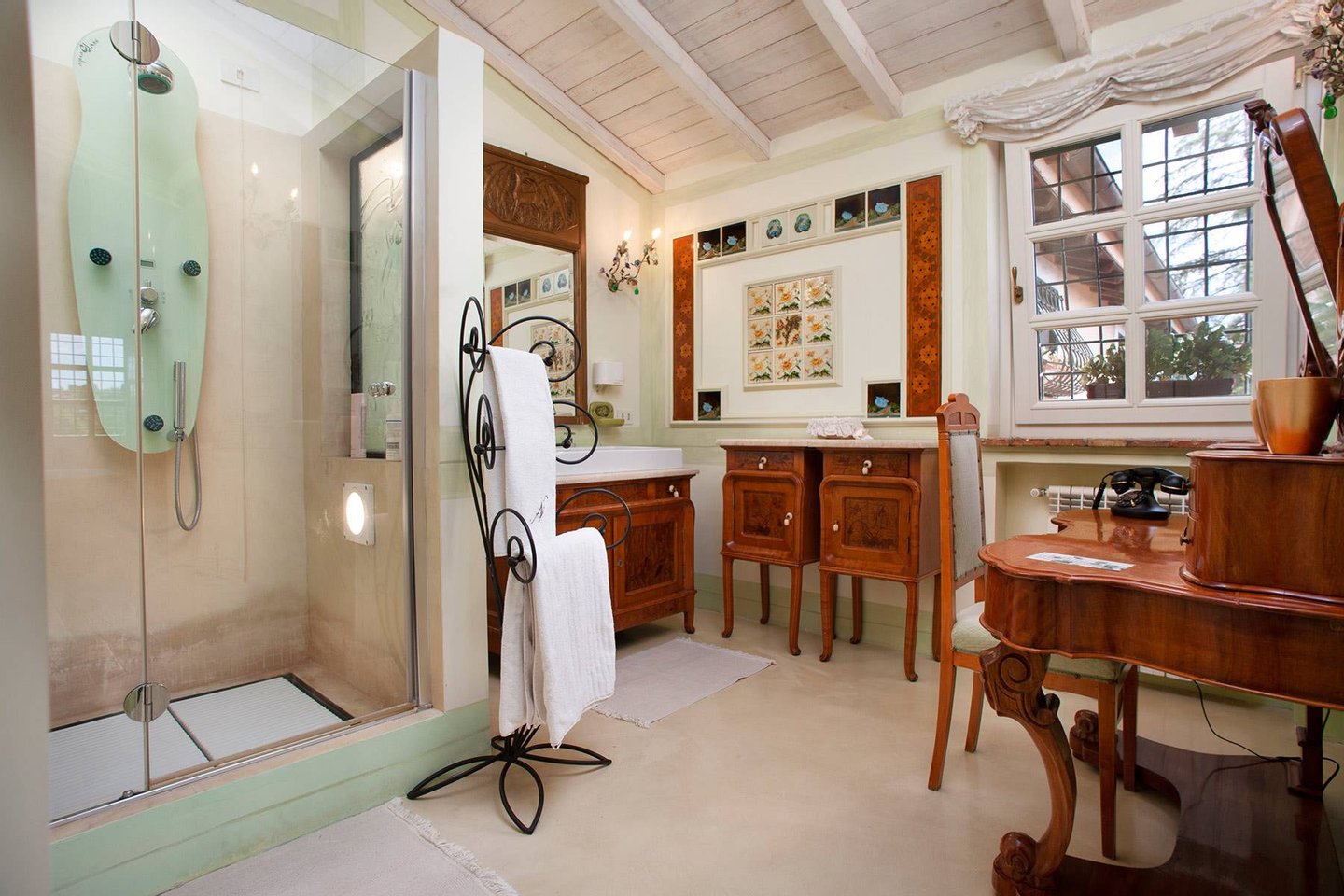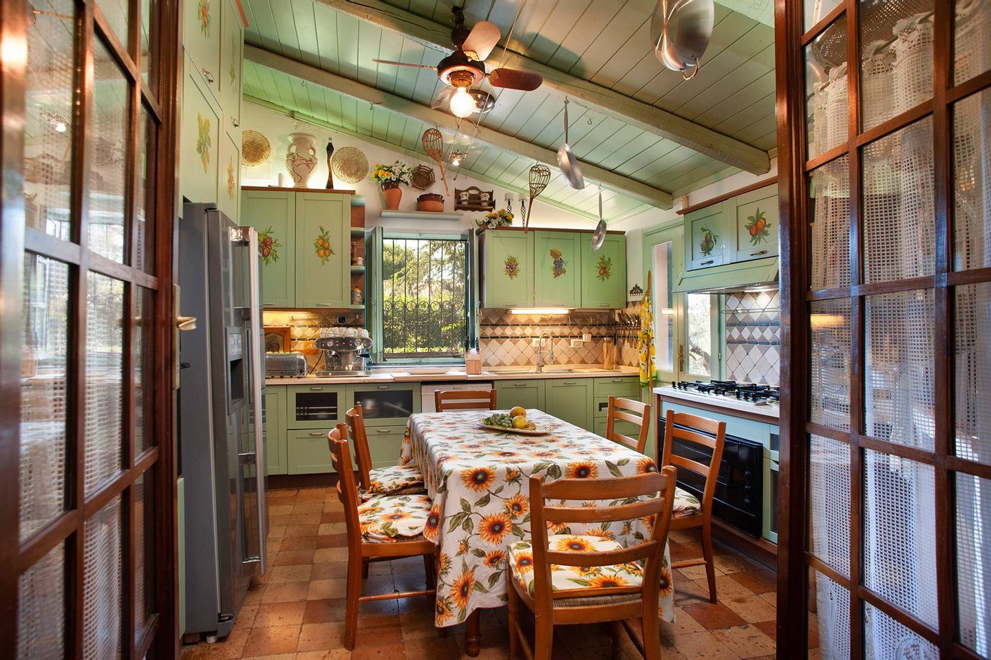 The villa is surrounded by a private park (4,000 square meters). The whole area around the villa has been arranged beautifully, with squares and paved paths that lead to all structures. Pleasant are the porches that constitute in spring and summer an extension of the living area. A large terrace with magnificent wisteria in front of the living area of the villa offers a beautiful view of the countryside: an ideal place for outdoor lunches and dinners in the summer season. The property also has two pizza ovens, one by the salt water pool and the other near the villa. A wonderful chef who has worked with Heinz Beck is included in the rental, and to top it off, a pizza chef is available once a week.