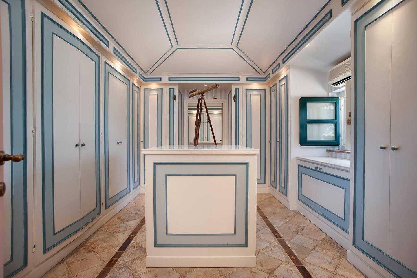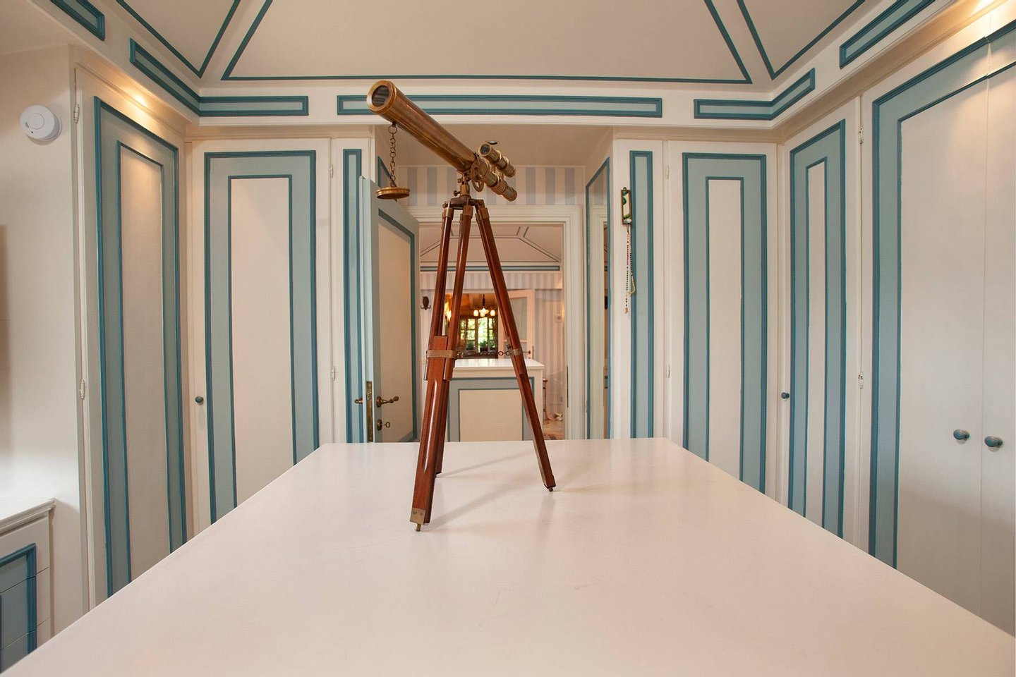 The main Villa has 4 bedrooms (sleeps 7) and 6 bathrooms (541 square meters) and is spread over three levels, all accessible by an internal elevator. The main entrance to the house is located on the ground floor, which houses a large living and dining area and fireplace, the living room (also with fireplace), a reading room and the kitchen, all with direct access to large porches and a large panoramic terrace. On the ground floor there is also a bedroom with wardrobe and private bathroom and an additional bathroom serving the living area. The first floor has two bedrooms with balconies, two bathrooms, a large wardrobe room and a hallway with study.