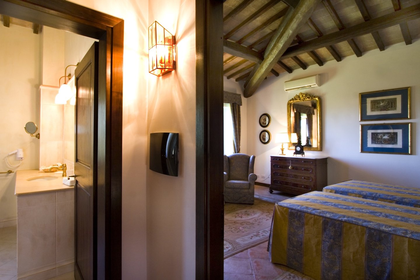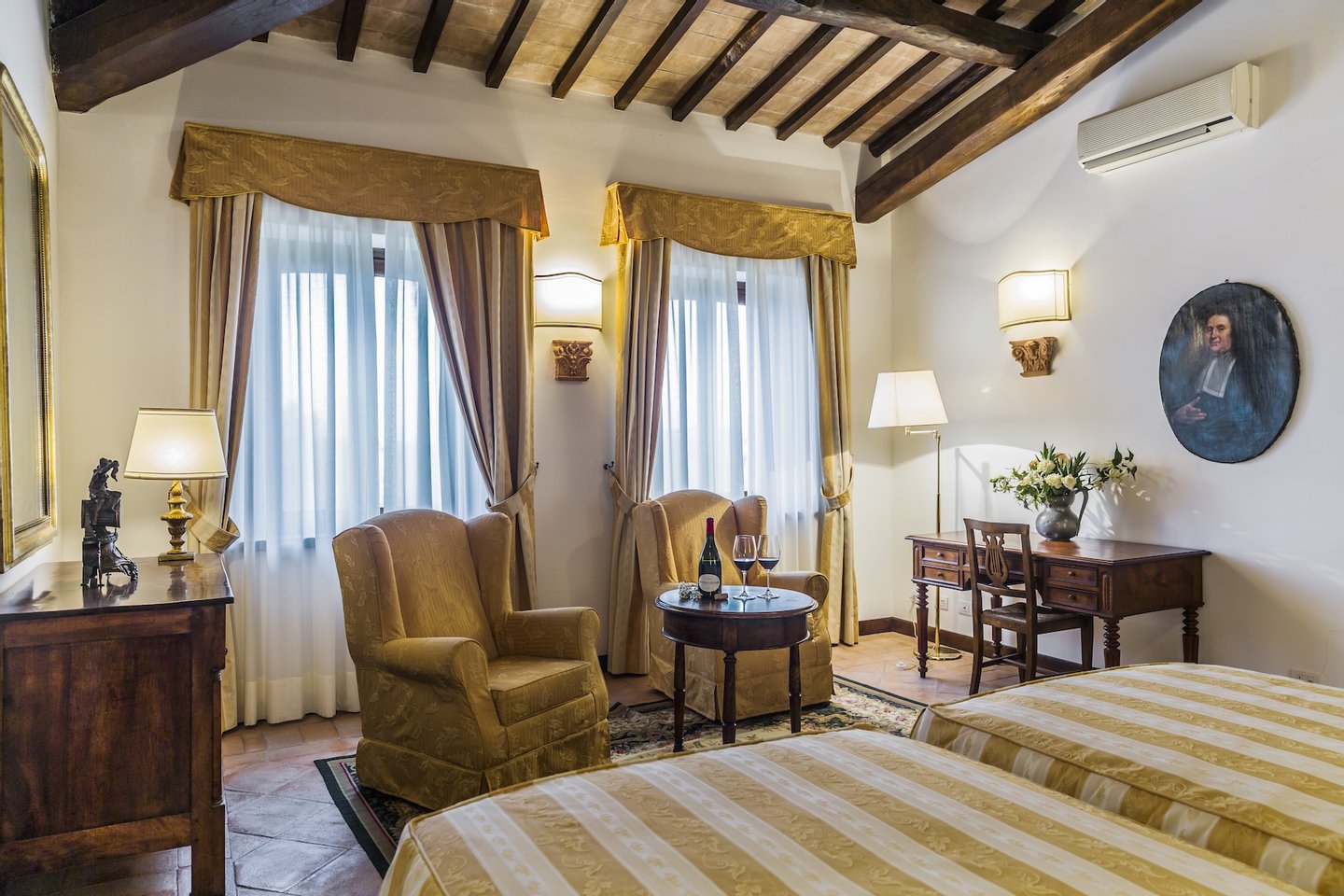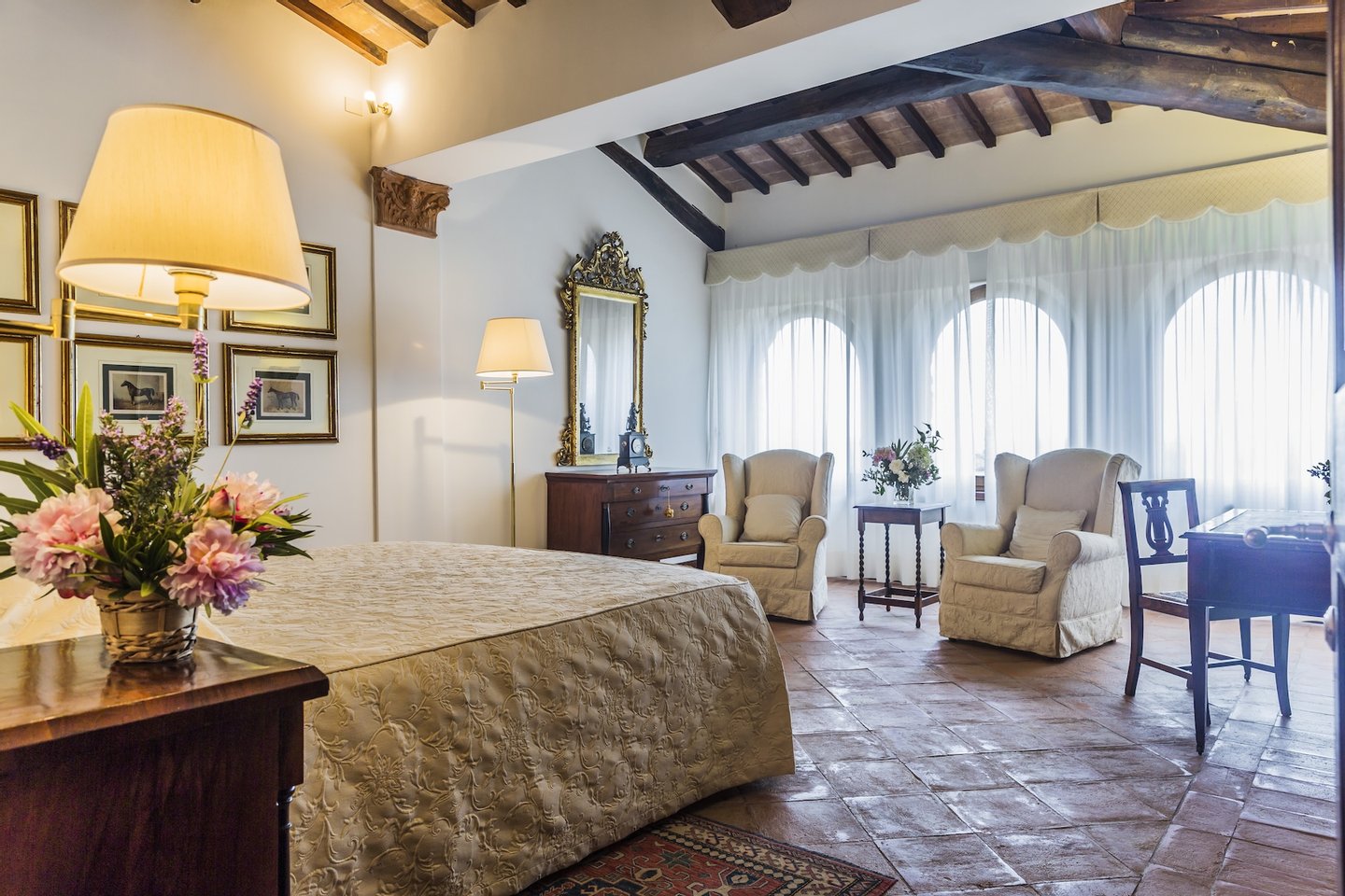 Located within the 140-acre estate of a renowned vineyard just outside Orvieto, Villa Mirea offers a stunning view of the Umbria hills and surrounding vineyards. T
