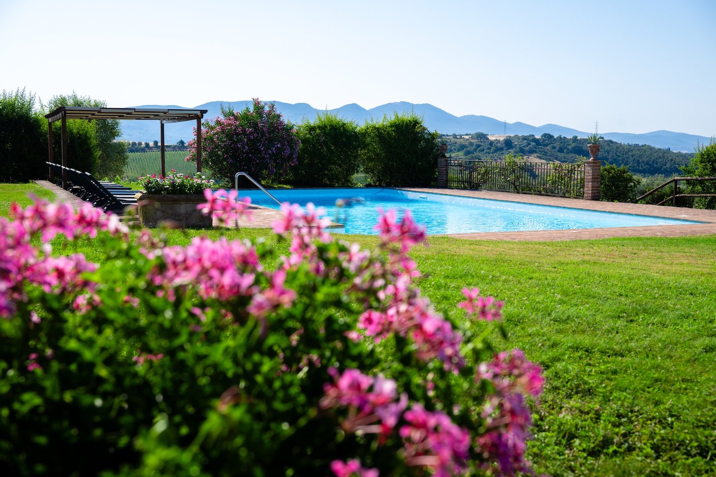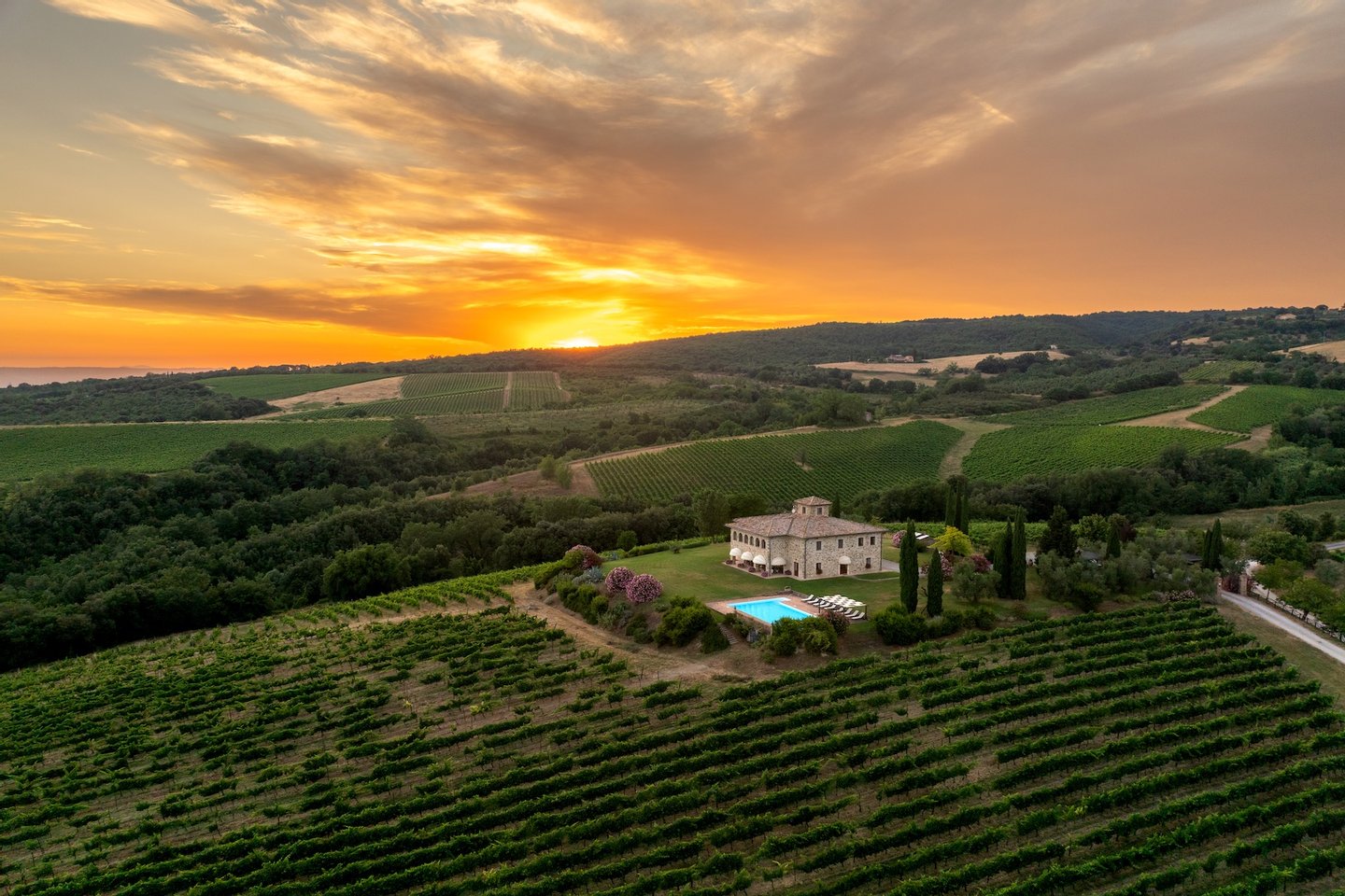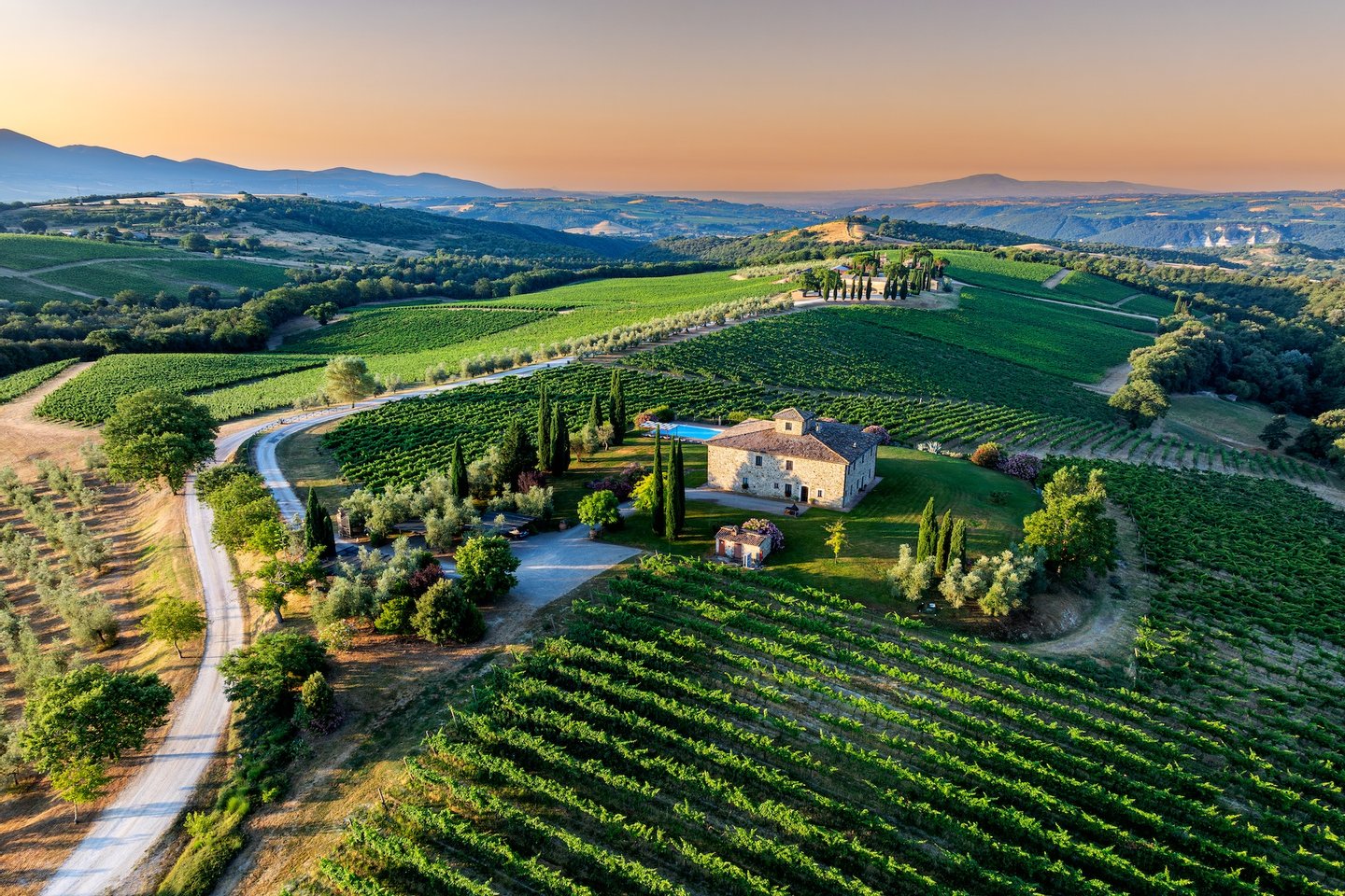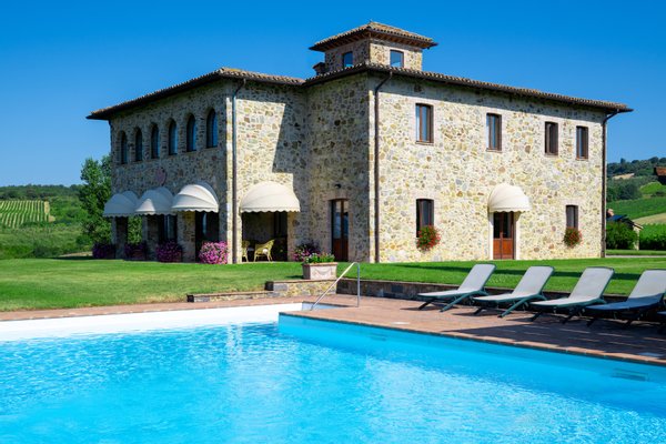 Located within the 140-acre estate of a renowned vineyard just outside Orvieto, Villa Mirea offers a stunning view of the Umbria hills and surrounding vineyards.