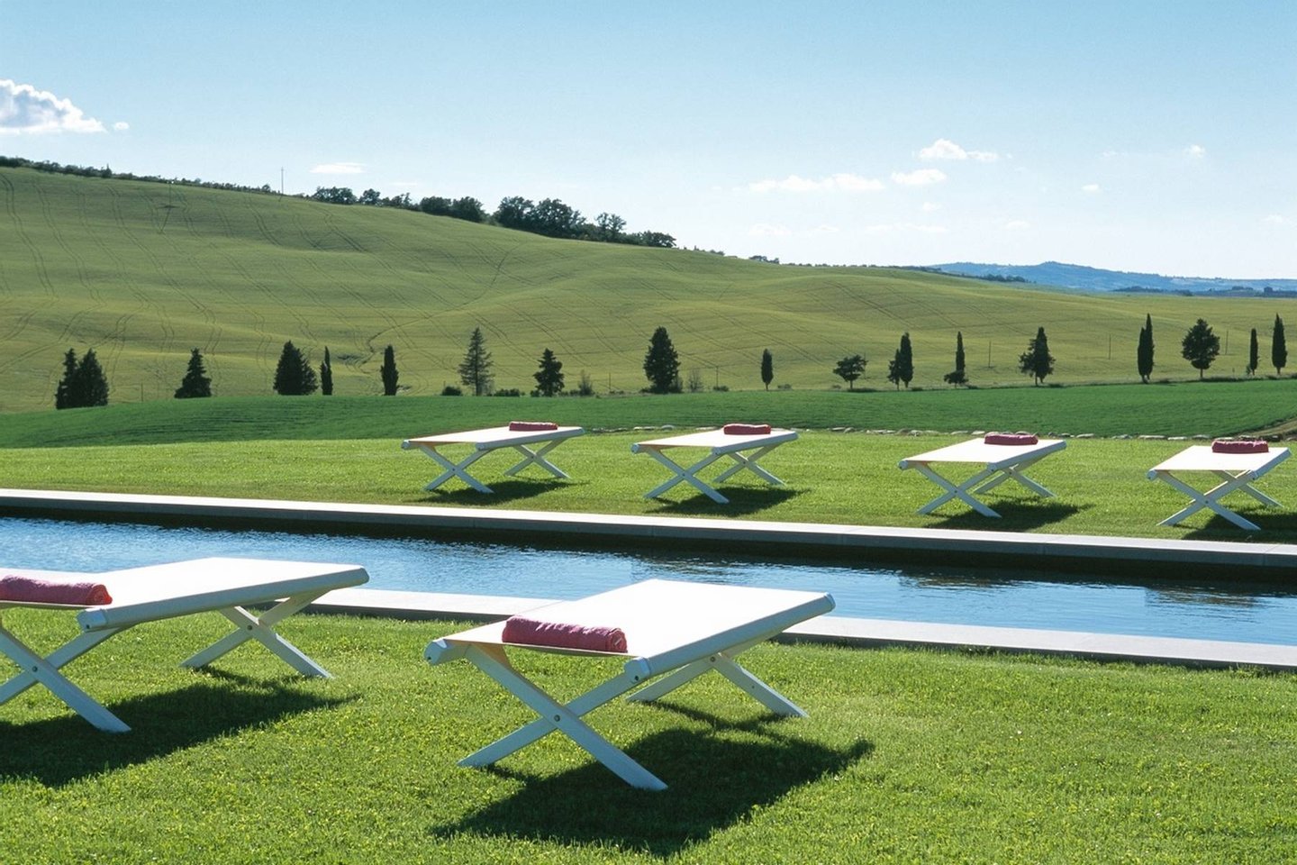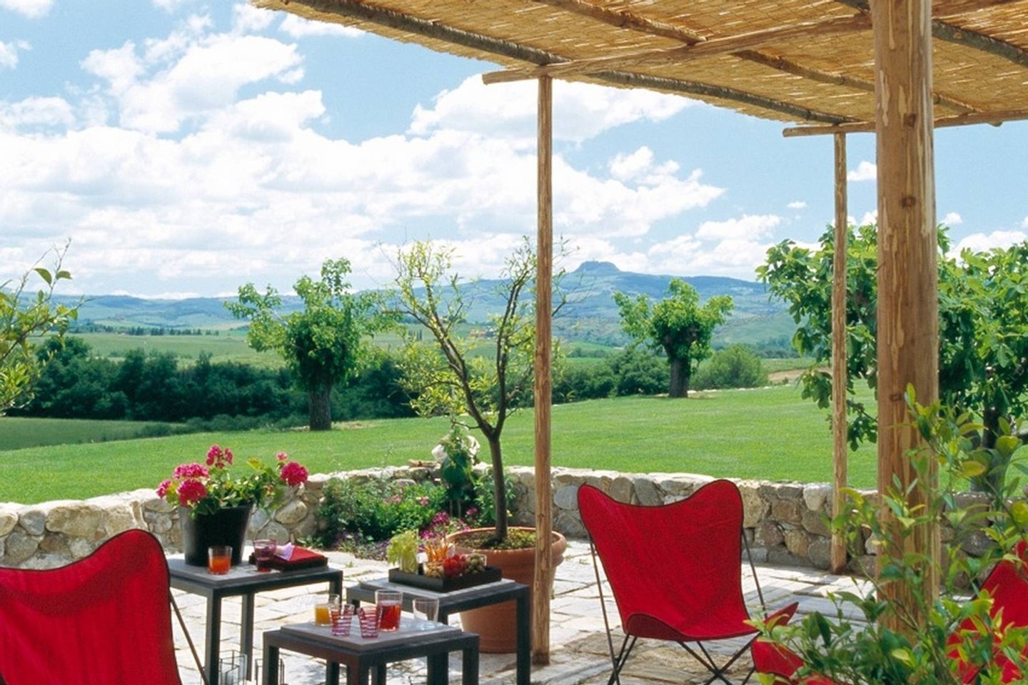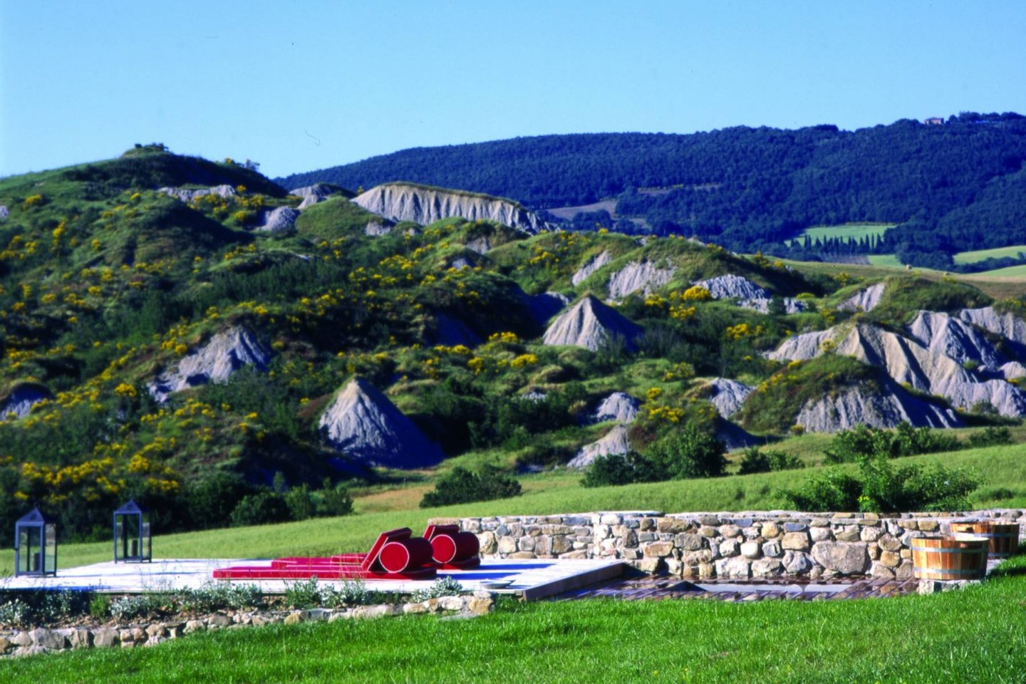 Located on the hilltop of the famous Val d'Orcia valley in the middle of the Tuscan countryside, Casa Lappolina is surrounded by three acres of landscaped gardens