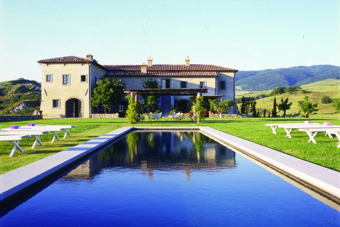 This majestic villa offers an unforgettable experience, situated in the sublime landscape of Val d'Orcia within a beautifully designed estate, offering the highest level of luxury.