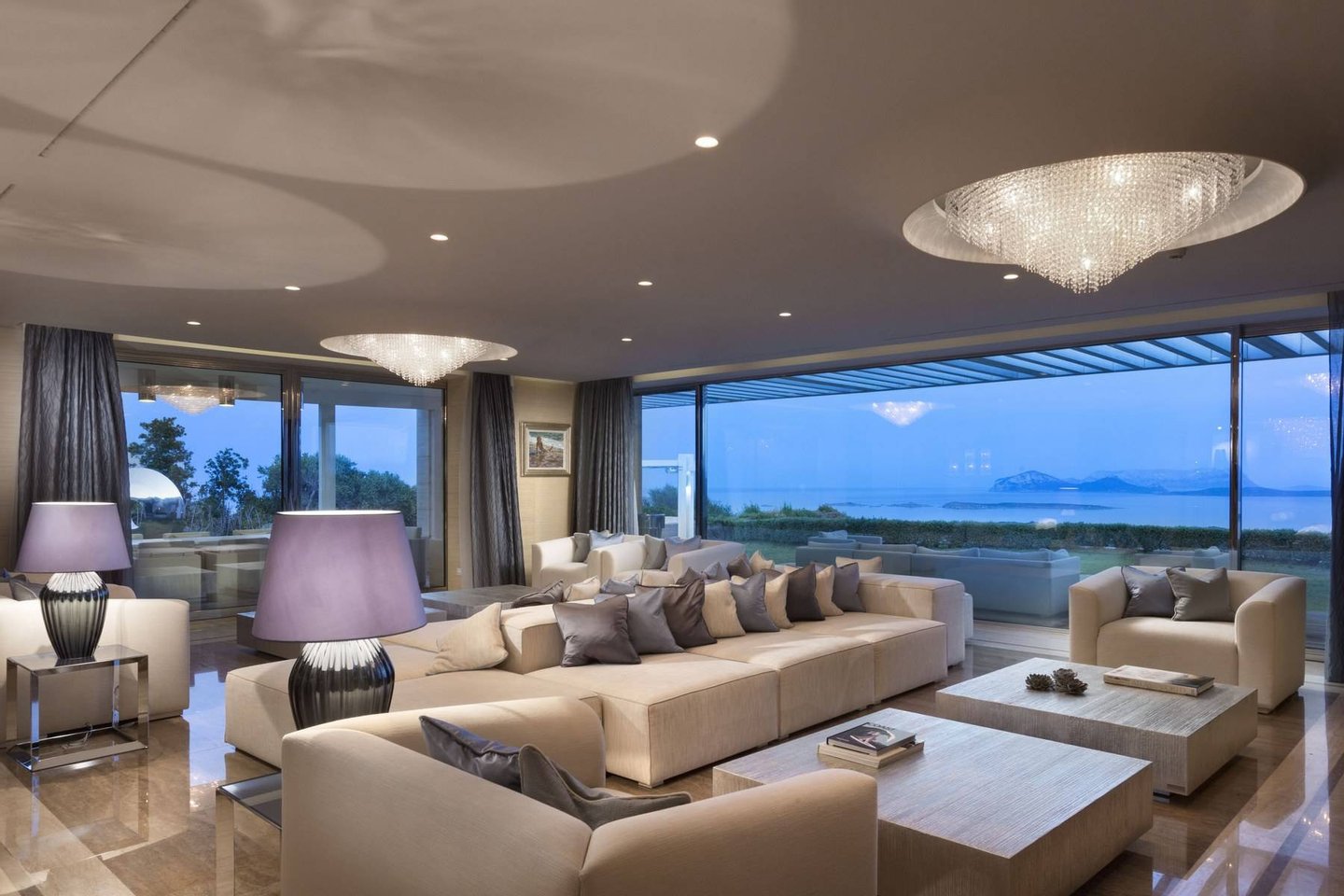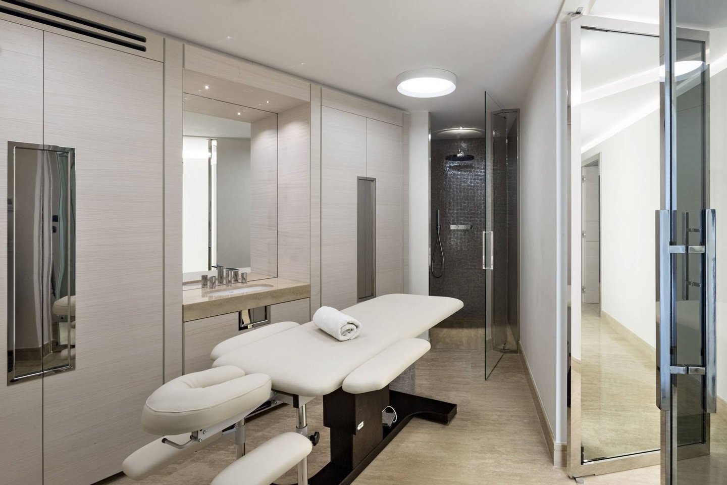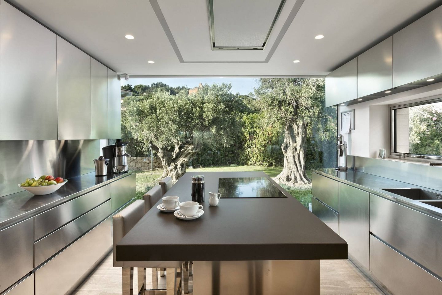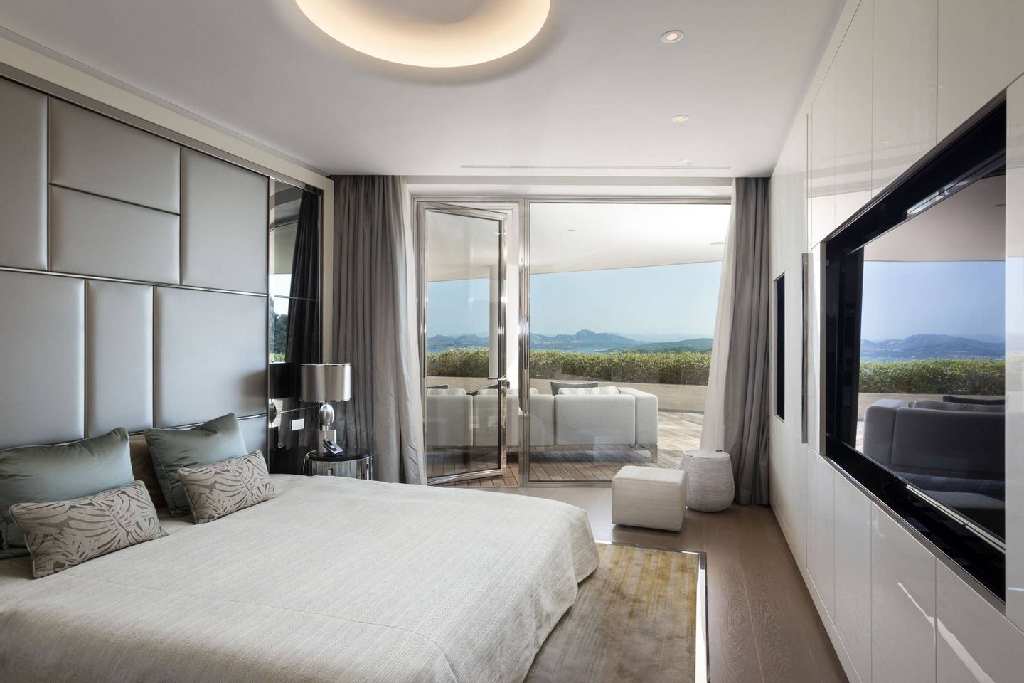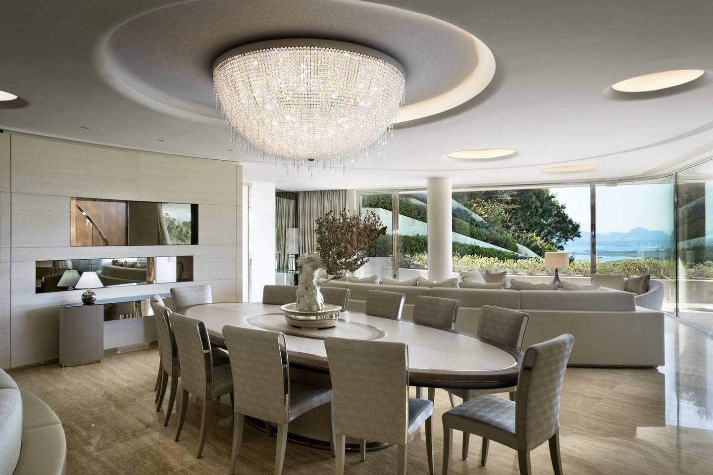 The second structure includes a steel kitchen, a very large and naturally panoramic living room, three bedrooms with private bathroom and walk-in closet, a gym with sea view, a spa with two massage rooms, hammam and yoga room, a cinema and a hairdressing salon.