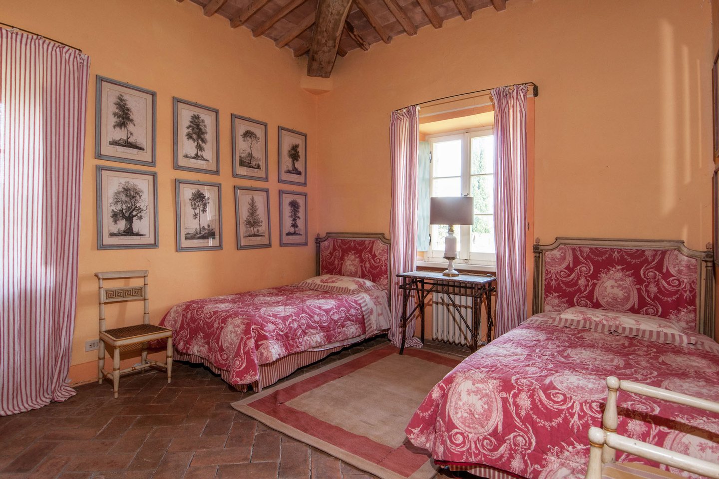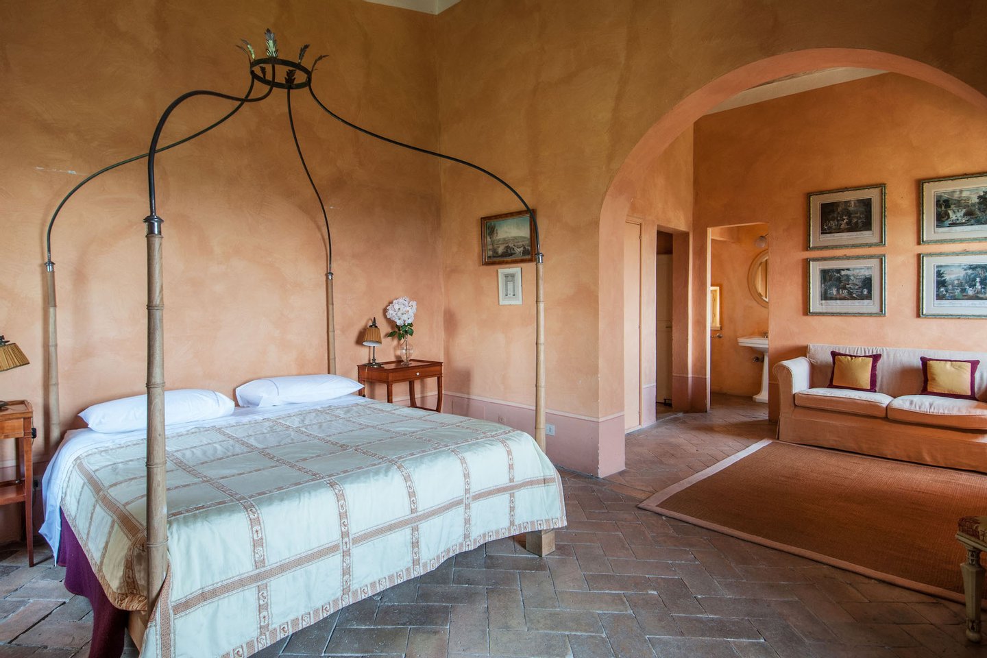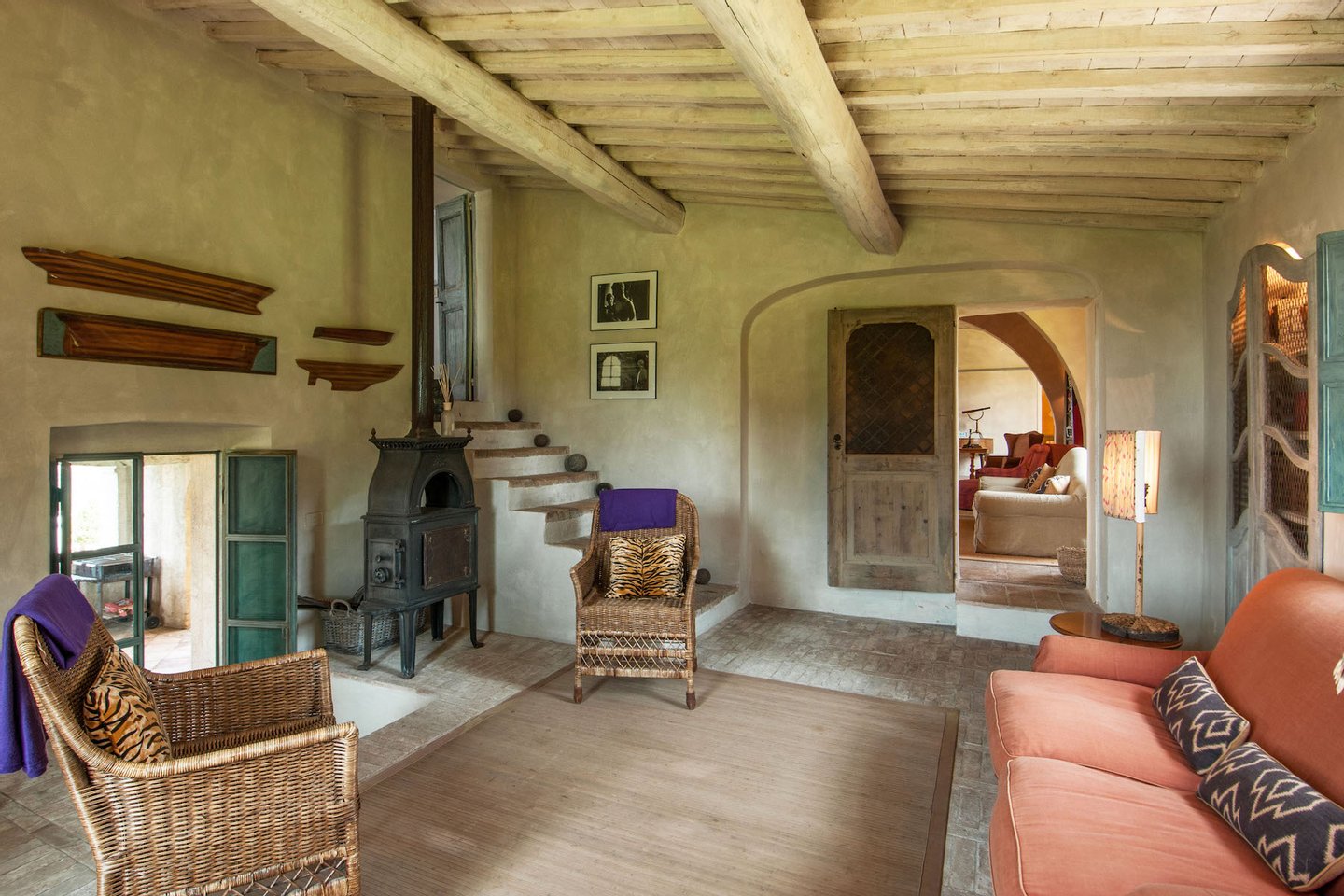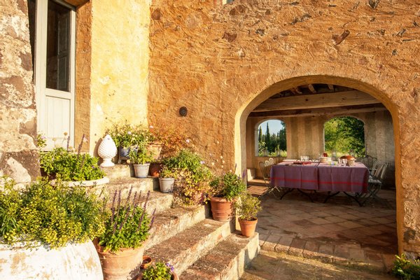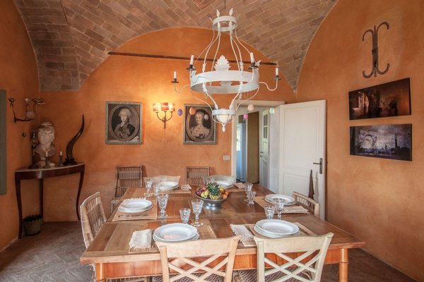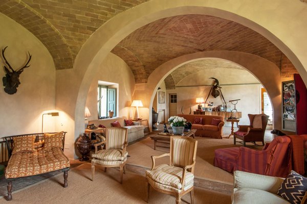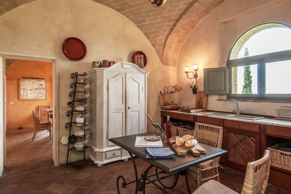 The villa was recently restored and furnished with style and care, honouring its classical Tuscan style while providing all modern comforts. The house has been featured in several books and magazines, including House and Garden, Elle Decor and Tuscany Interiors. The rooms have been painted and furnished throughout in warm yellows and terracottas, which blend seamlessly with the brick tiled floors, exposed beams, vaulted ceilings, and sunny open spaces.