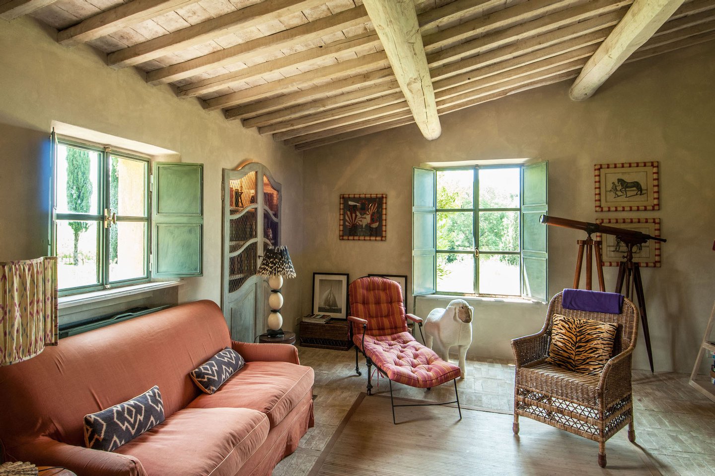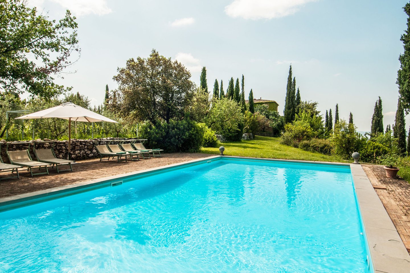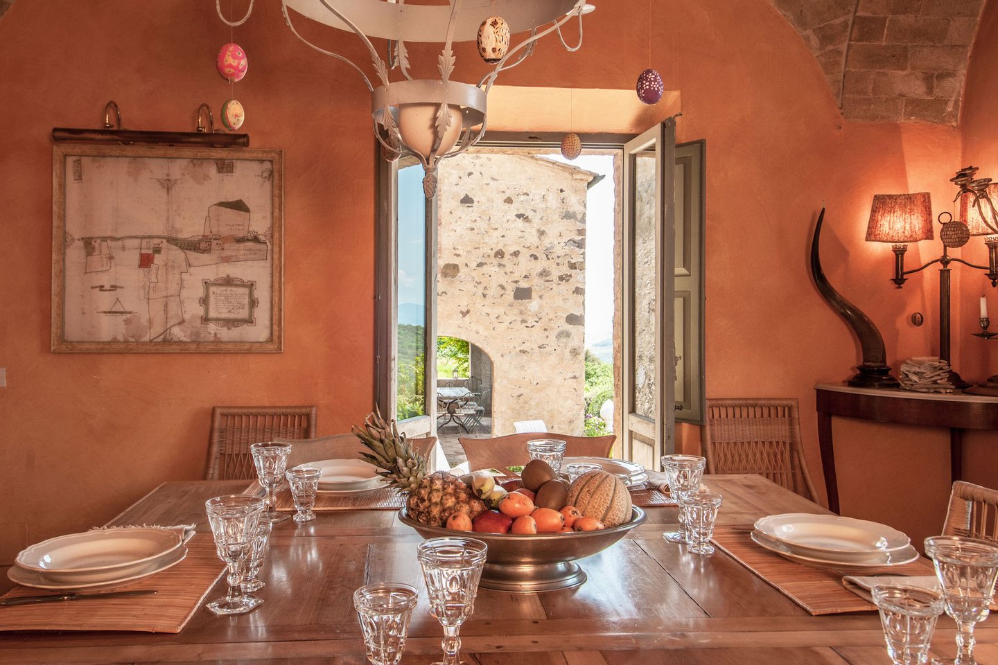 The villa was recently restored and furnished with style and care, honouring its classical Tuscan style while providing all modern comforts. The house has been featured in several books and magazines, including House and Garden, Elle Decor and Tuscany Interiors. The rooms have been painted and furnished throughout in warm yellows and terracottas, which blend seamlessly with the brick tiled floors, exposed beams, vaulted ceilings, and sunny open spaces.