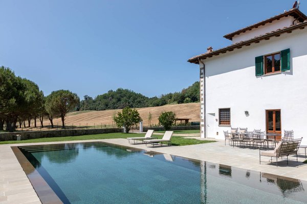 ...mehr lesenThis classic Tuscan villa is positioned in a very peaceful area surrounded by cypresses and other centuries-old trees and 70 hectares of ground. Situated in the Tuscan Val d'Arno countryside it is very suitable for those who are looking for total relax and privacy.