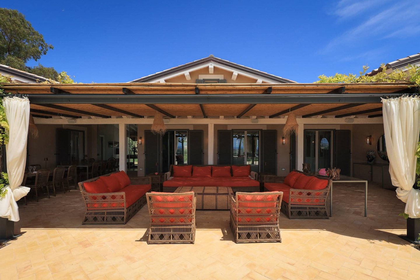 Outside there is a covered dining area, a covered lounge area, infinity swimming pool, garden, and parking. A Cook and 3 Maids are included as well as laundry service (excluding dry cleaning). Personal trainer, tennis coach, yoga instructor, masseuse, babysitter and overnight staff can be organized upon request.