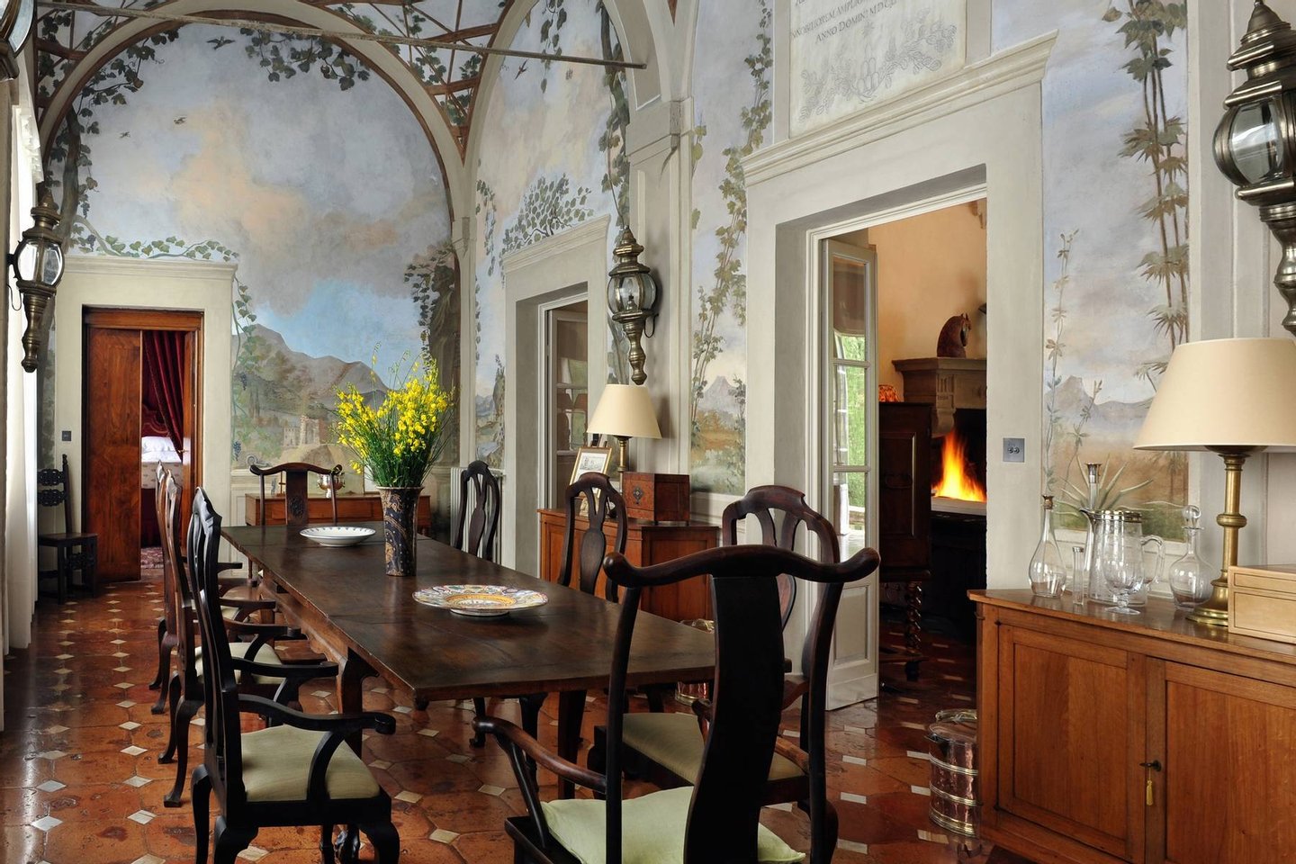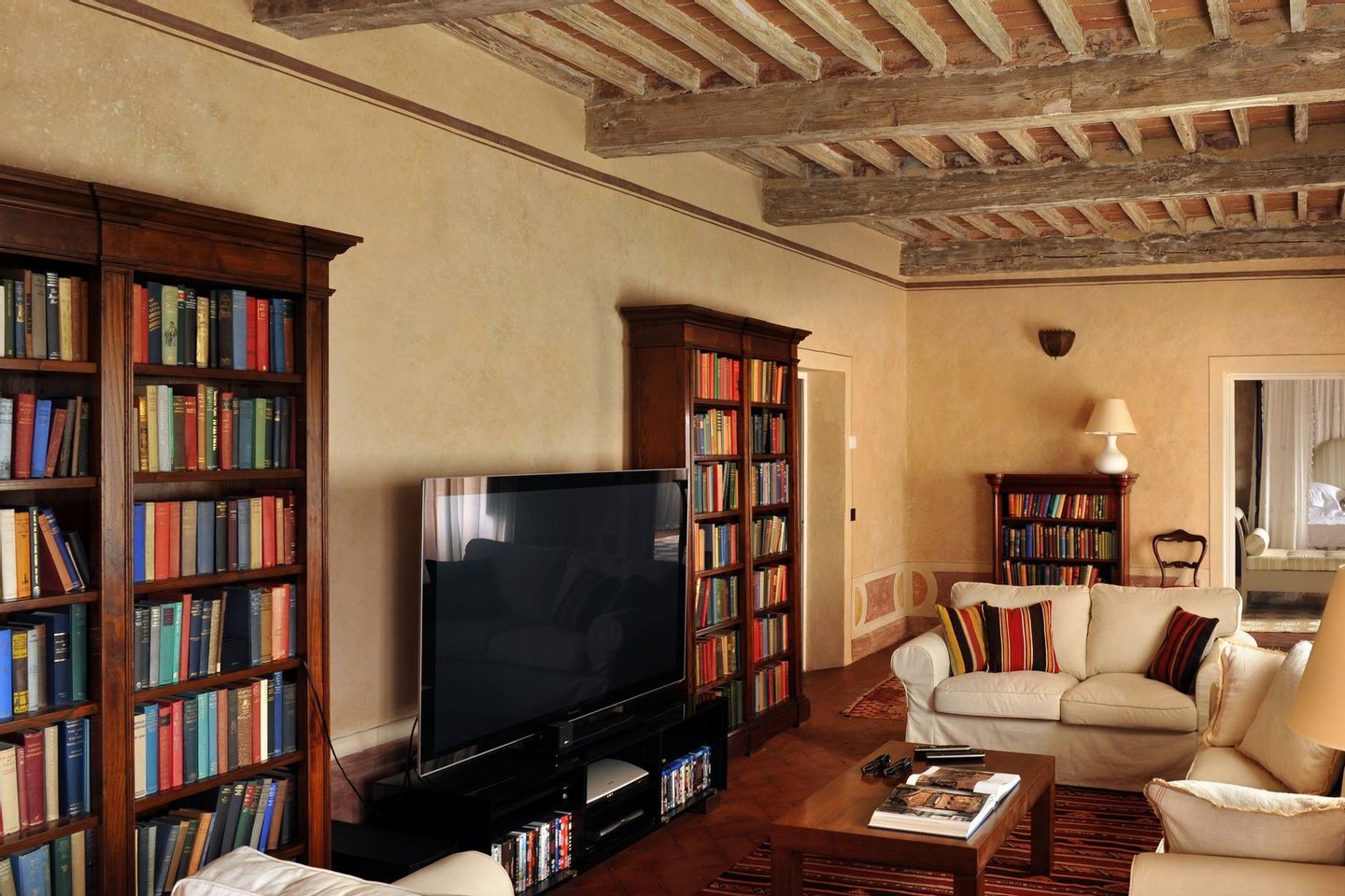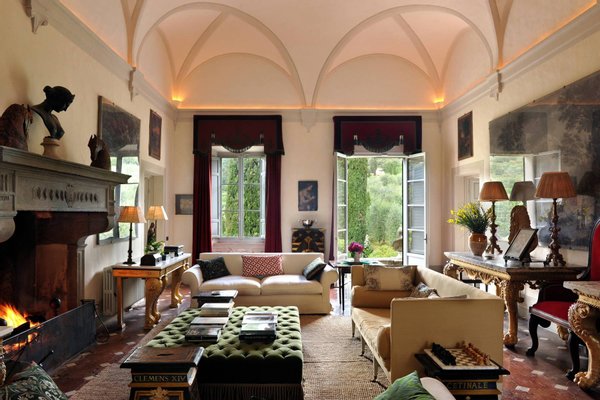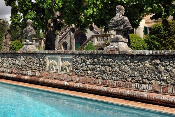 The estate was a farmhouse built upon the ruins of a 9th century B.C. Etruscan settlement. This aristocratic property is decorated with elegance, in a traditional style honoring its heritage, but also with consideration to modern sensibilities. The villa features traditional Tuscan fireplaces, terracotta tiled floors, vaulted and beamed ceilings, beautifully frescoed walls, classical paintings, and renowned statues around the estate to greet its guests.