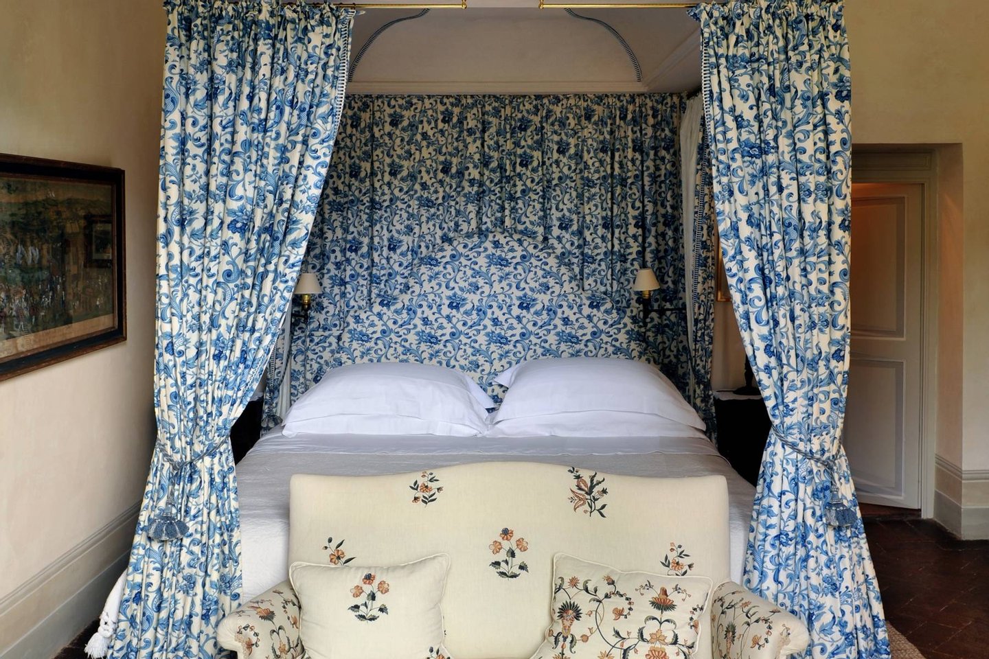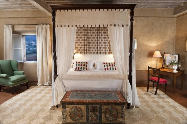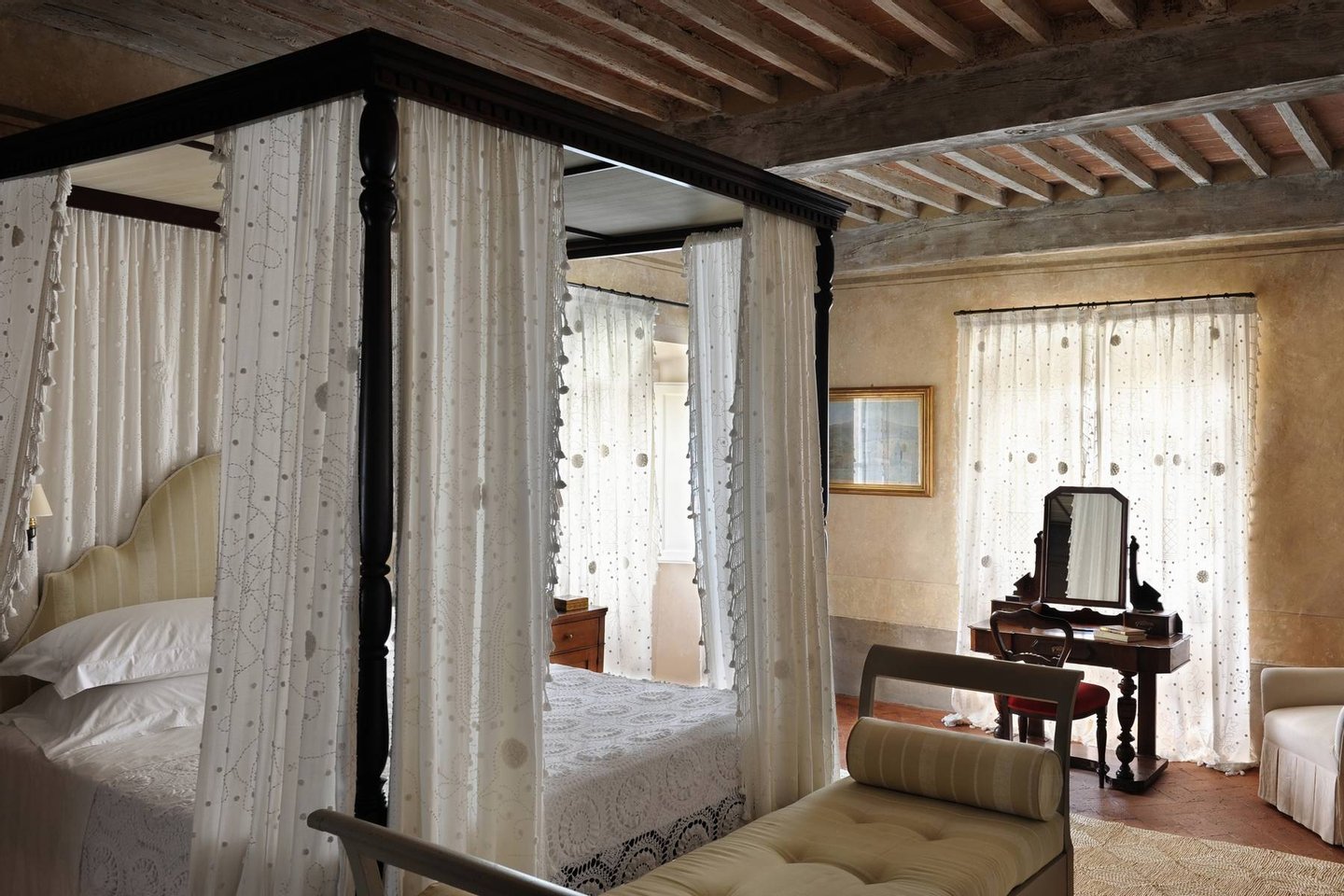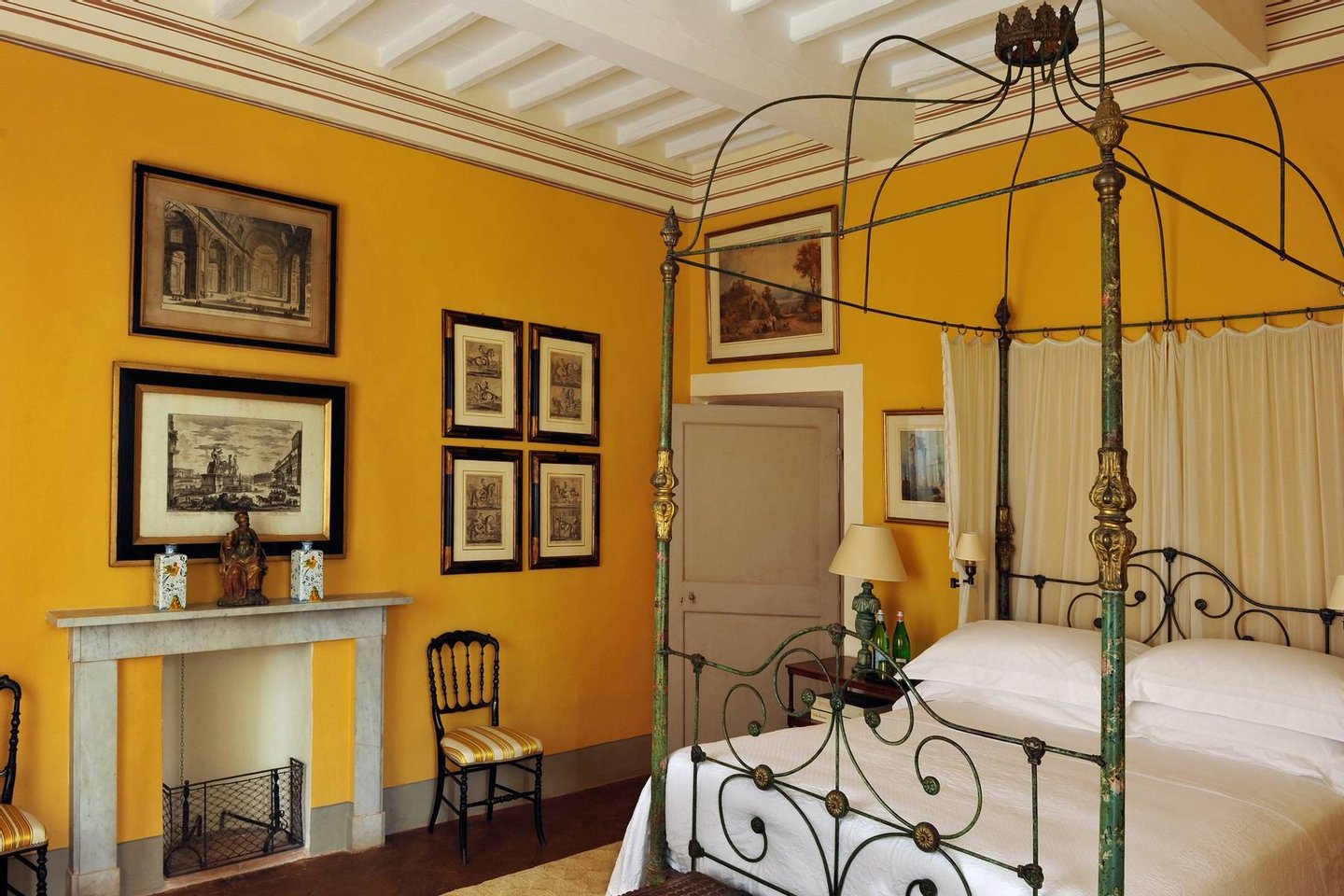 The estate was a farmhouse built upon the ruins of a 9th century B.C. Etruscan settlement. This aristocratic property is decorated with elegance, in a traditional style honoring its heritage, but also with consideration to modern sensibilities. The villa features traditional Tuscan fireplaces, terracotta tiled floors, vaulted and beamed ceilings, beautifully frescoed walls, classical paintings, and renowned statues around the estate to greet its guests.