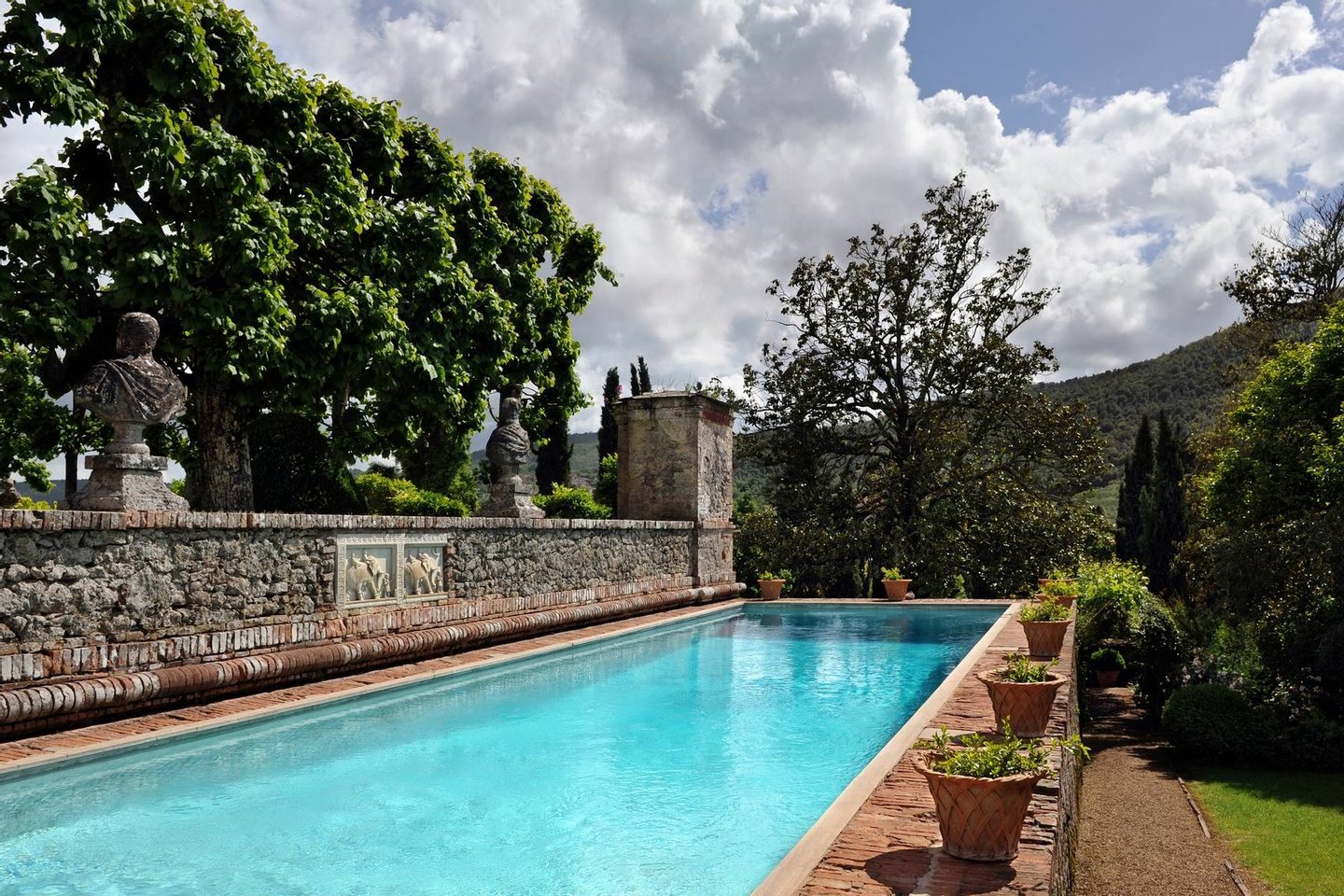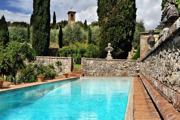 The grounds surrounding the villa are considered among the most exquisite gardens in Italy. The estate is ideally situated for sightseeing, shopping, eating out or just relaxing in the beautiful Tuscan landscape. It's just 14 kilometers from the cultural and artistic city of Siena, 15 kilometers from the famous hilltop town of Monteriggioni, 44 kilometers to breath-taking San Gimignano, while the Chianti region and Florence are an hour drive from the villa. Many fascinating local cultural excursions can be organised, such as local trekking, yoga courses, horse riding, mountain biking, wine tasting and town tours. Within the property, there is also ample entertainment, including a cinema room, exclusive use of the famous private garden, an outdoor, heated swimming pool, a tennis court, and a games room in the Limonaia, with table tennis and table football.