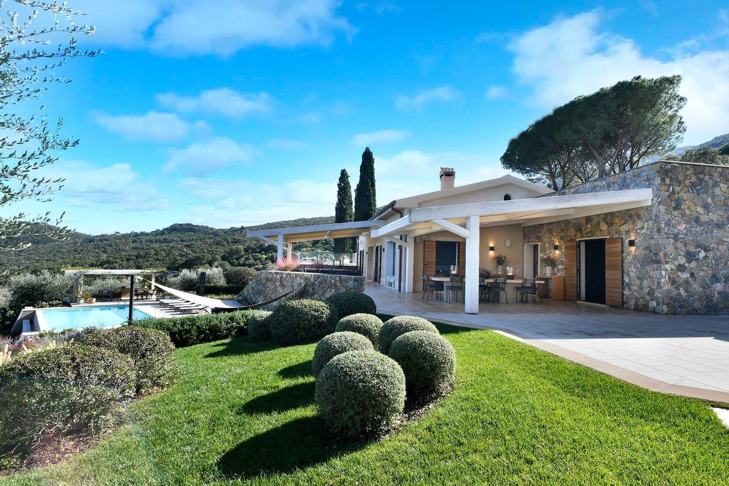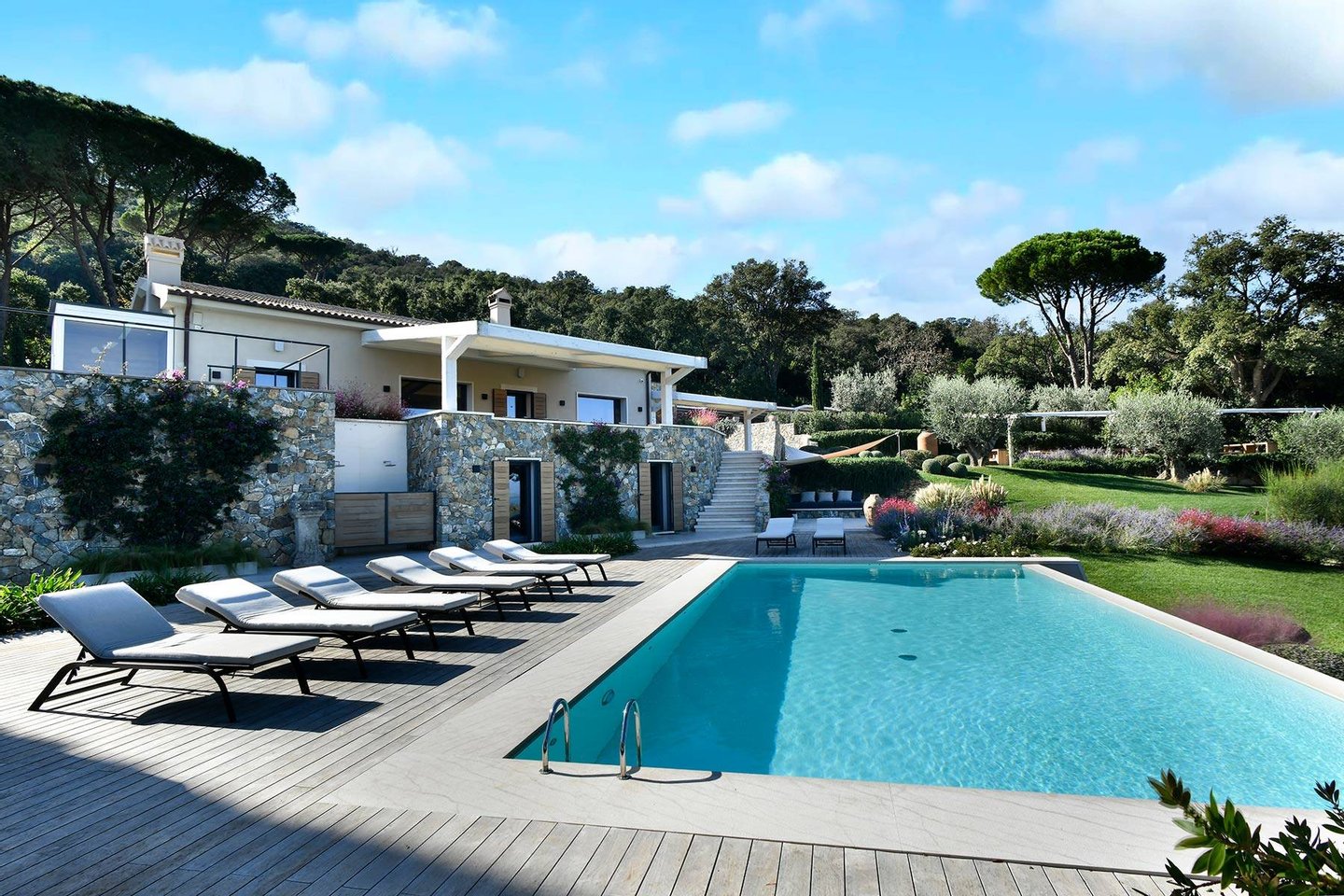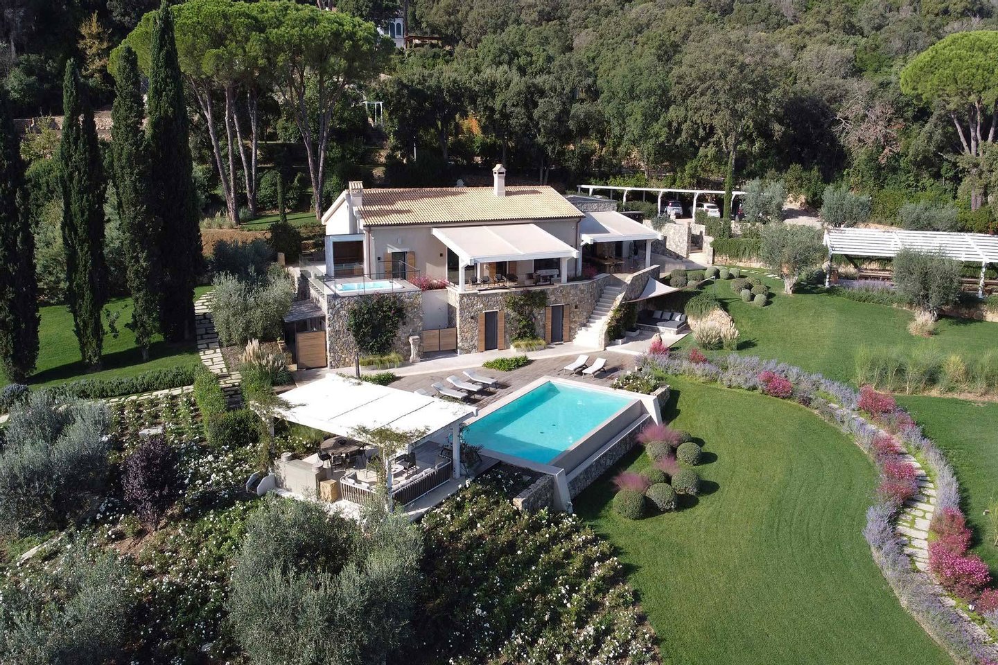 Podere Le Cascate is an exclusive estate located in the Argentario region, just a short distance from Cala Piccola, Porto Ercole, and Ansedonia. The property enjoys a privileged position near the Argentario Golf Club and the sea, offering a
