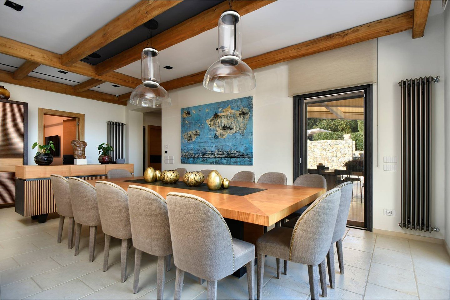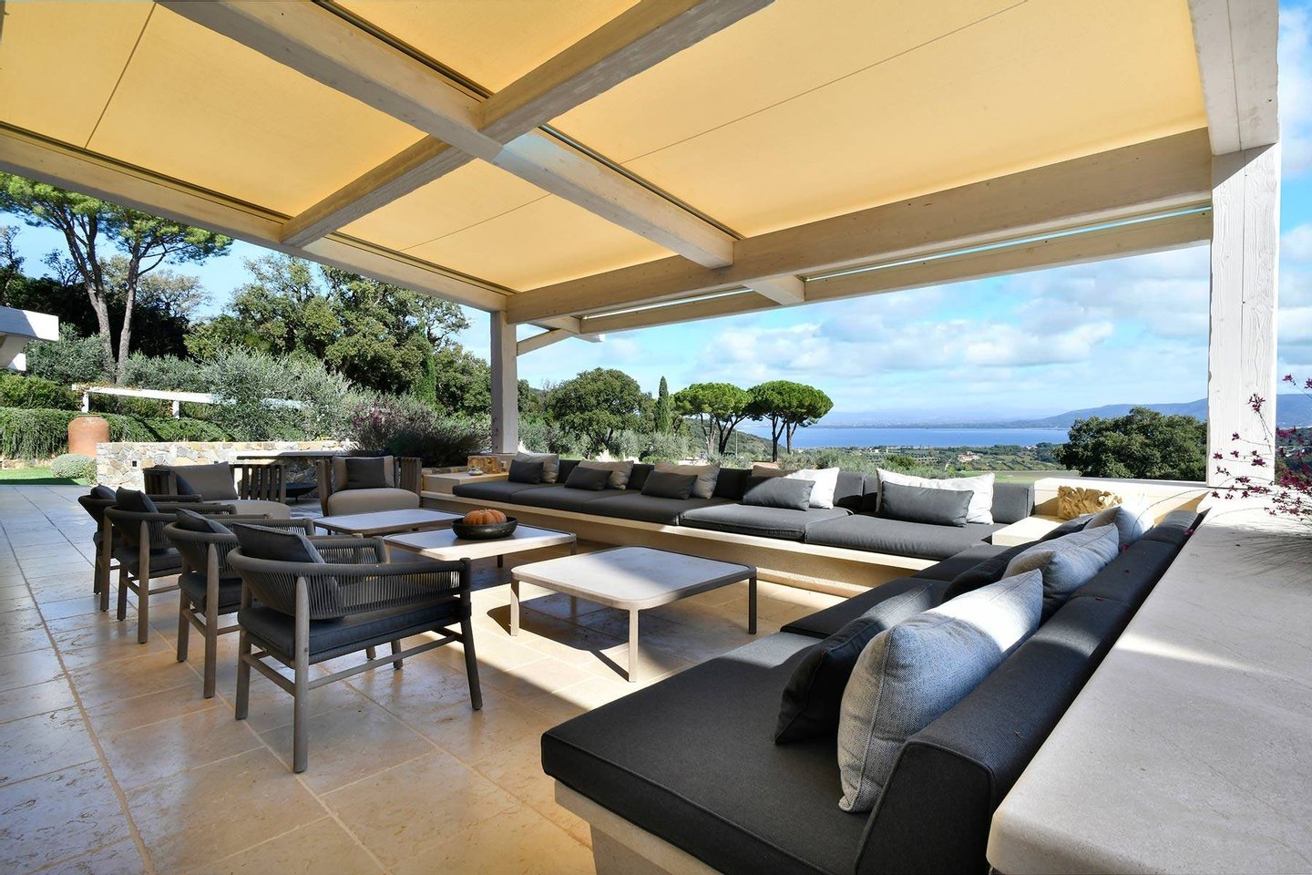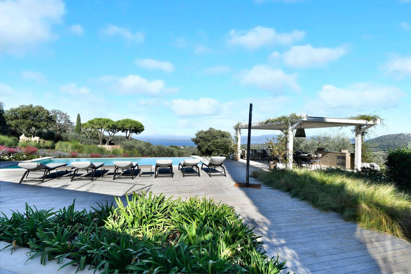 A spacious barbecue area with a wood-fired oven enhances the culinary experience.