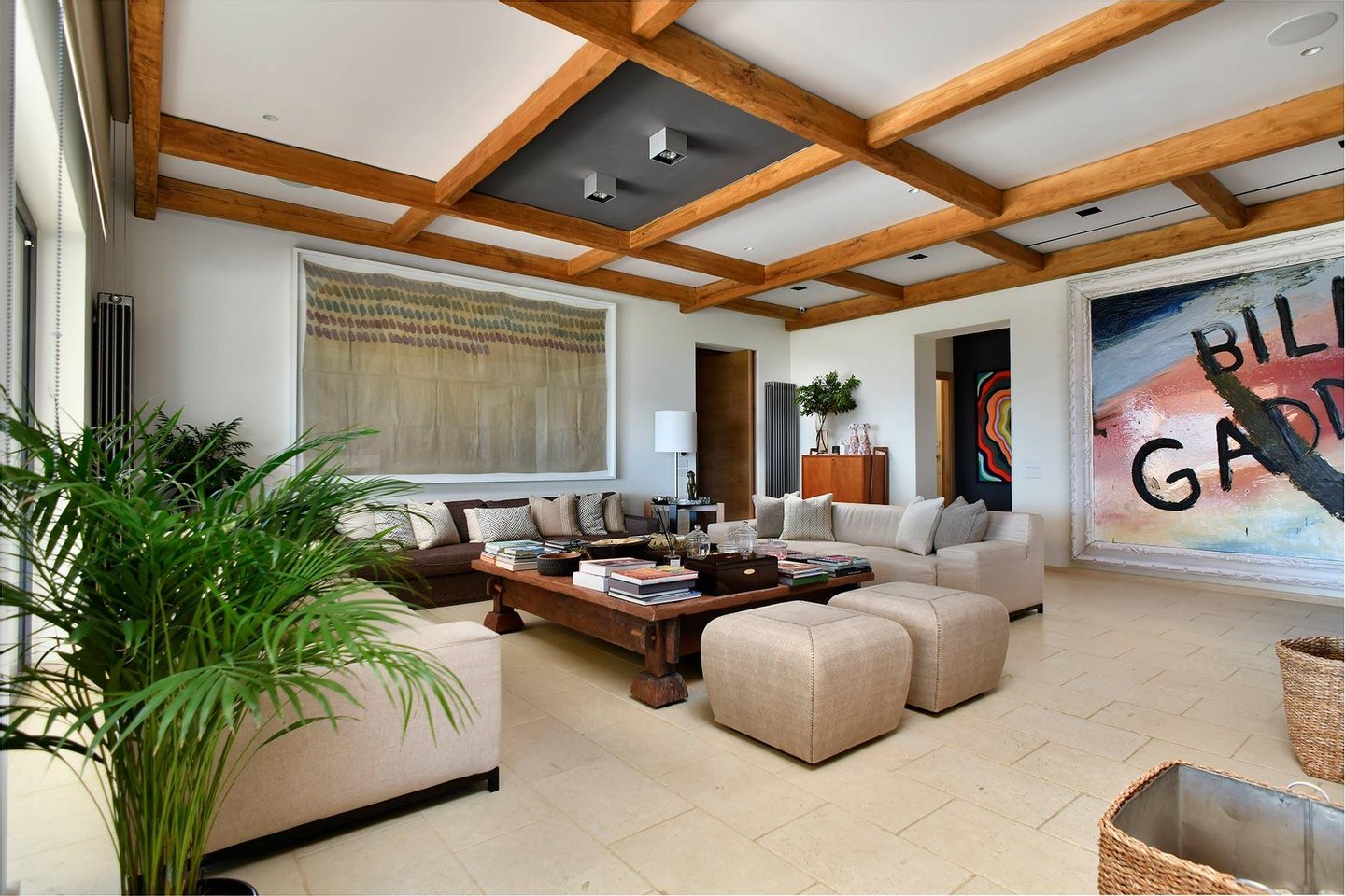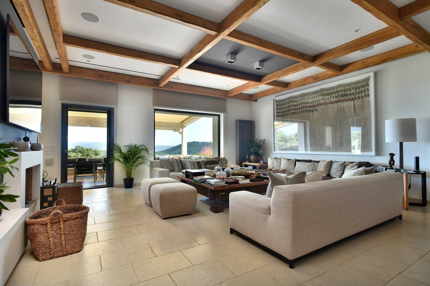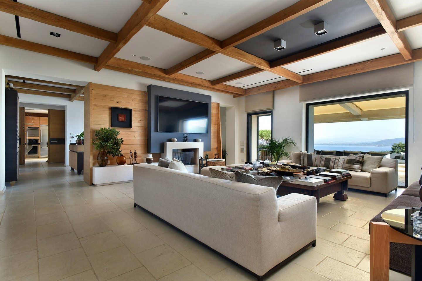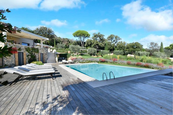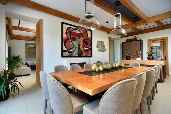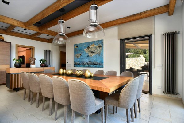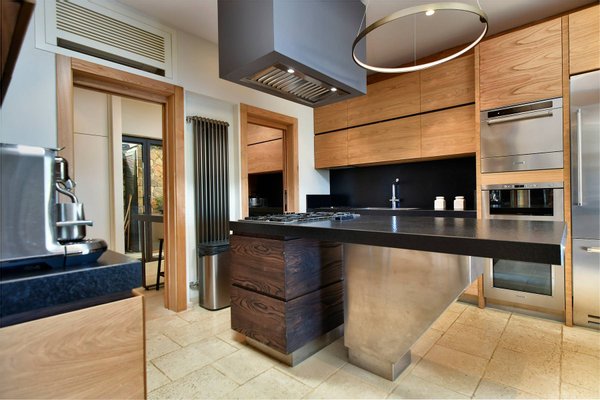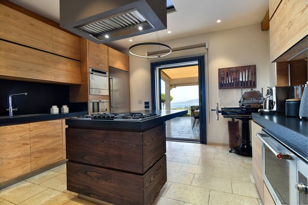 Pool Level: includes two bedrooms with en-suite bathrooms, one of which includes a Turkish bath; a changing room with bathroom and indoor shower; a gym equipped with Technogym equipment and a bathroom with shower; a massage room; a wine cellar; and a second kitchen dedicated to the pool area.