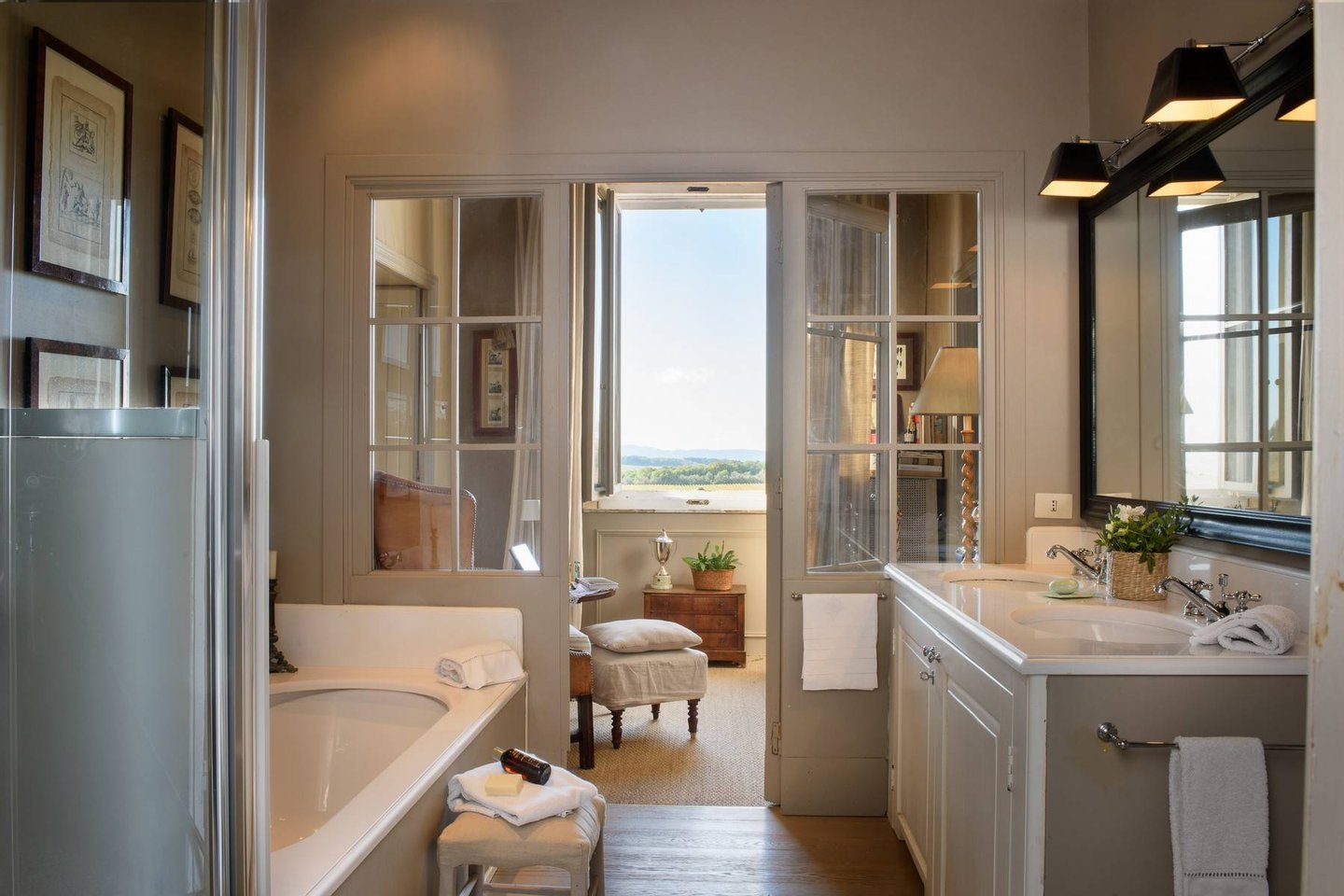 The interior was designed by Princess Ma rianita Ruspoli, a combination of modern elegance and authentic Tuscan style. The villa consists of 9 ensuite bedrooms with private bathrooms fully equipped with BVLGARI bath products. The kitchen has everything one needs to create superb cuisine, using the organic vegetables and fruit from the estate's own garden. There is even a surprise for gelato lovers to have their own home-made ice-cream experience.