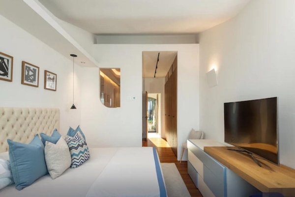 - 7 double bedrooms with en-suite bathrooms, closets/wardrobes, and large screens, approximately 25 sqm each