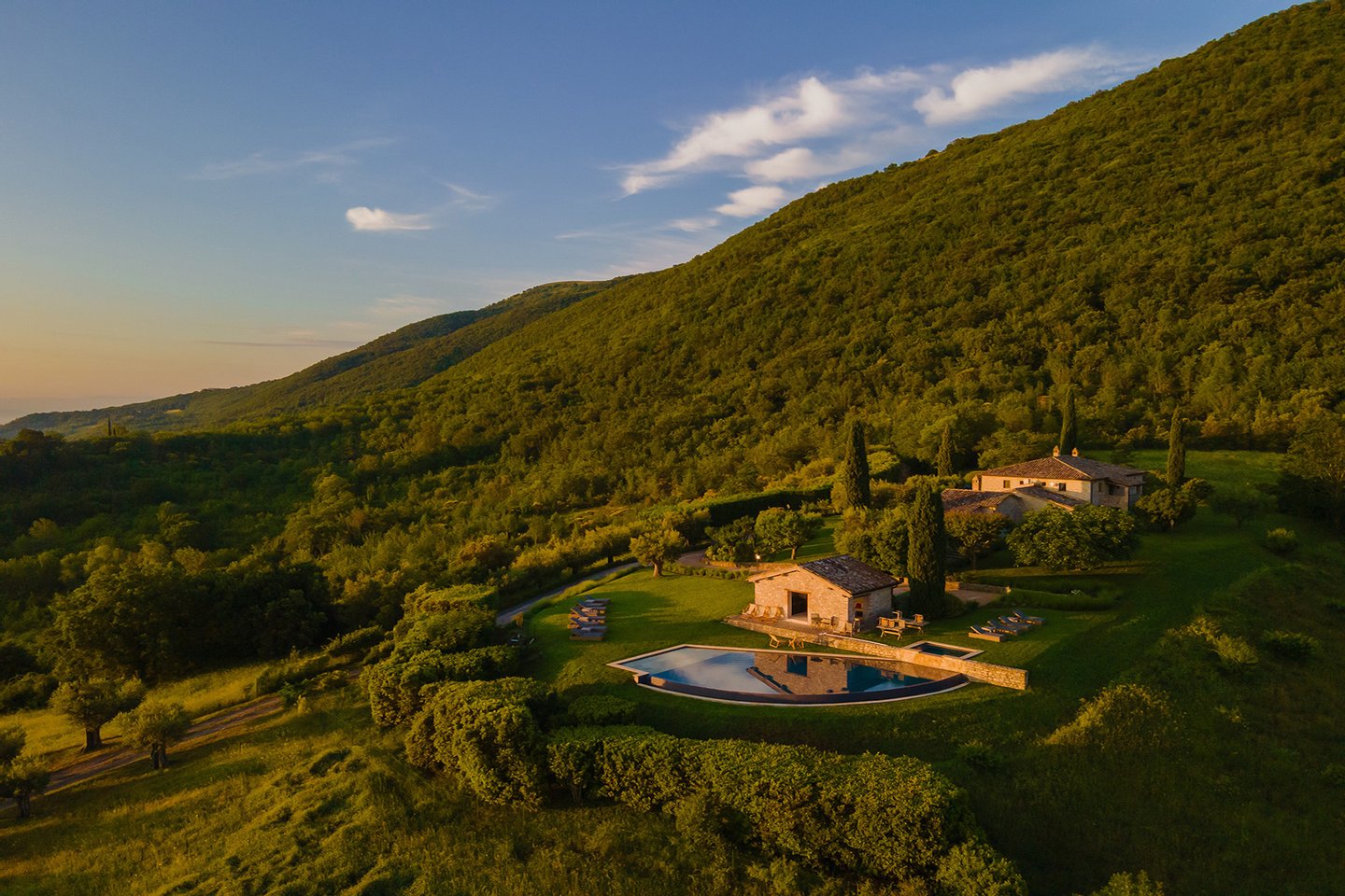 The property consists of a beautiful 16th century farmhouse, perched on top of one of the hills of Murlo, offering incredible views of the medieval castle of Antognolla which are extremely impressive from the large infinity pool.