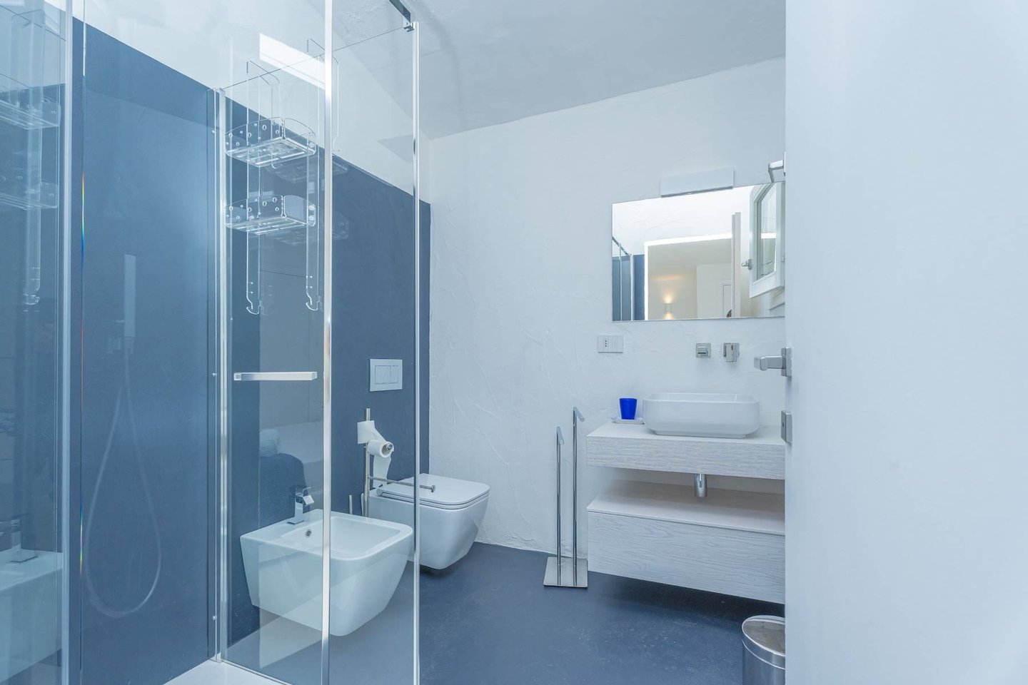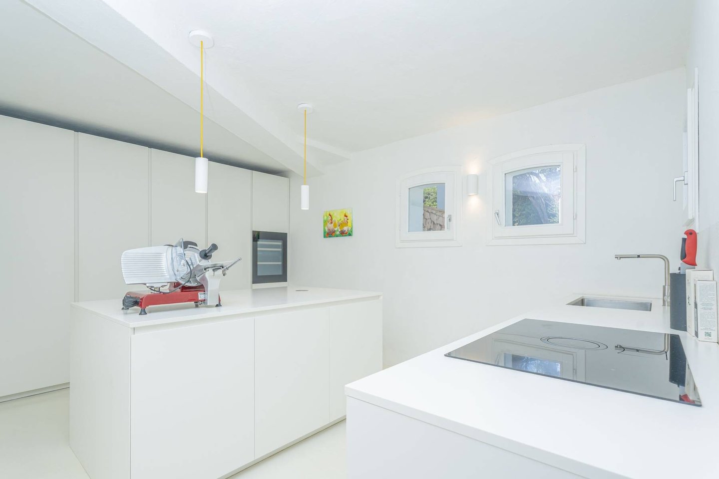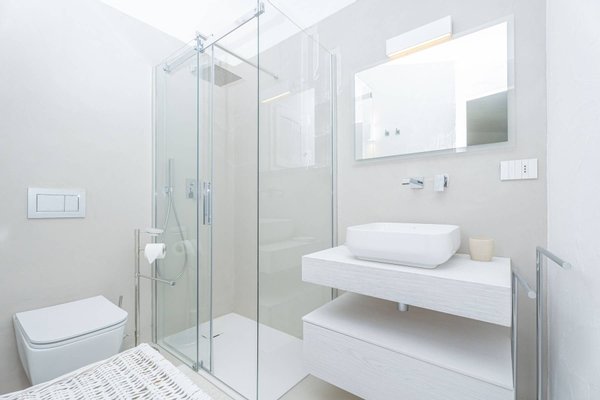 The structure of the property is very harmonious and enjoys an uncommon brightness, thanks to the large windows and the predominantly white finishes of the walls and floors, alternating with furnishings characterized by soft colors, expertly blended by the owner's elegant hand.