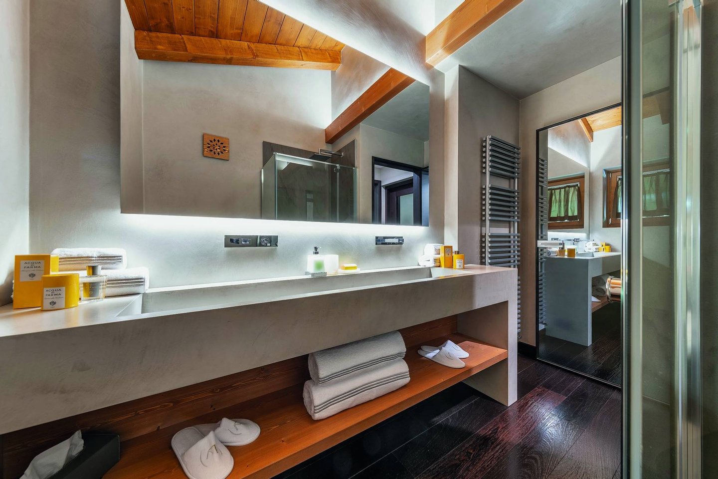 Chalet La Perla is part of an exclusive complex of luxury properties that arise in the beautiful scenery of the Ampezzo Dolomites. Located in the richest area of Cortina, the chalet overlooks the famous Passeggiata, enjoying a spectacular view of